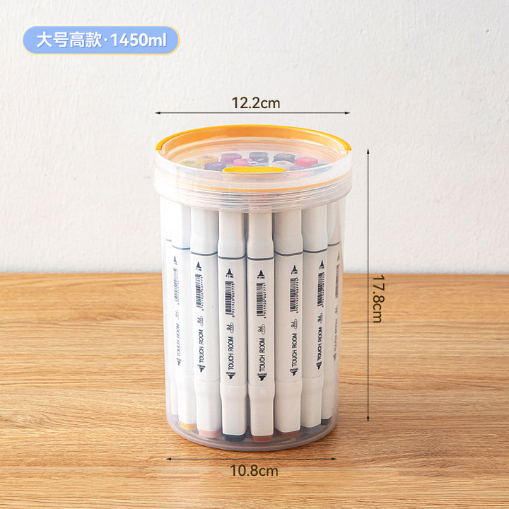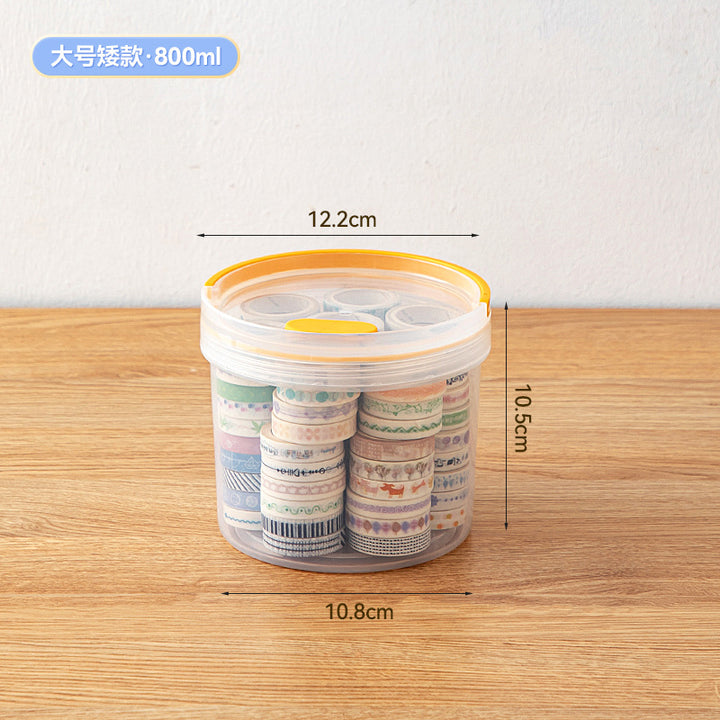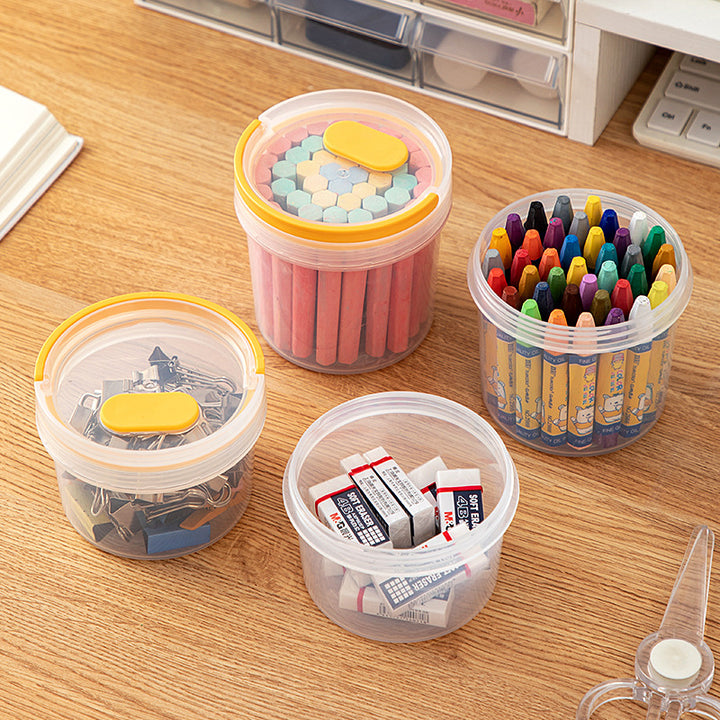 Desktop round handheld pen holder storage box with lid transparent plastic multi-functional desk sundries stationery storage box