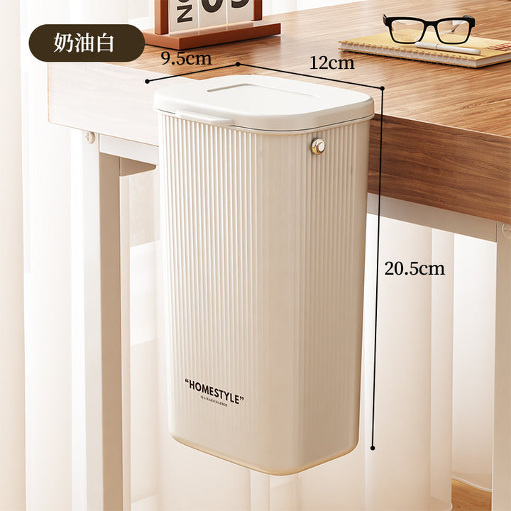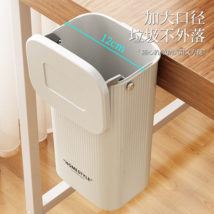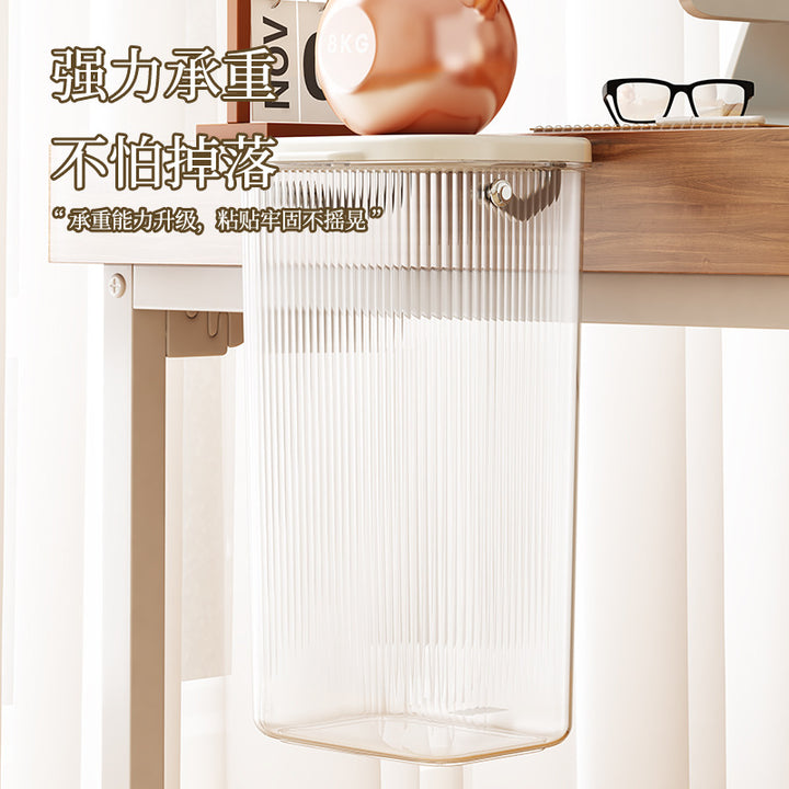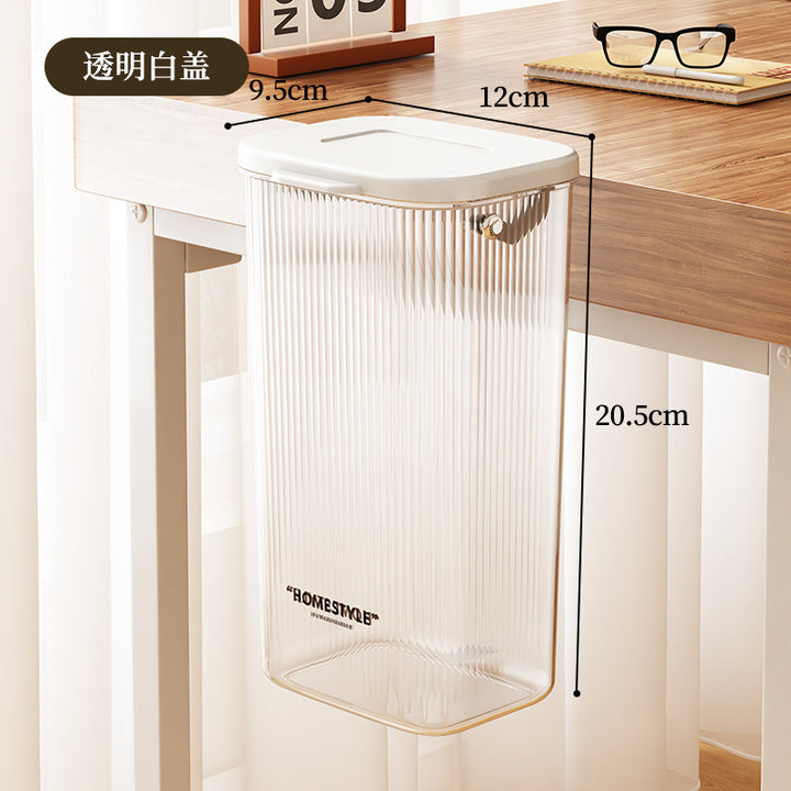 Desktop trash can with lid Storage bucket Student dormitory Home office Desktop wall hanging No punching Transparent trash can