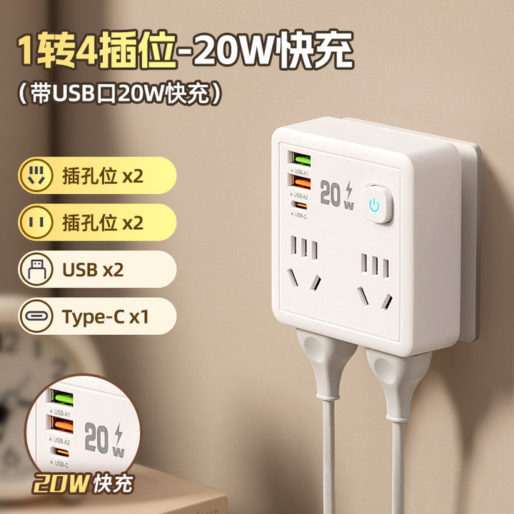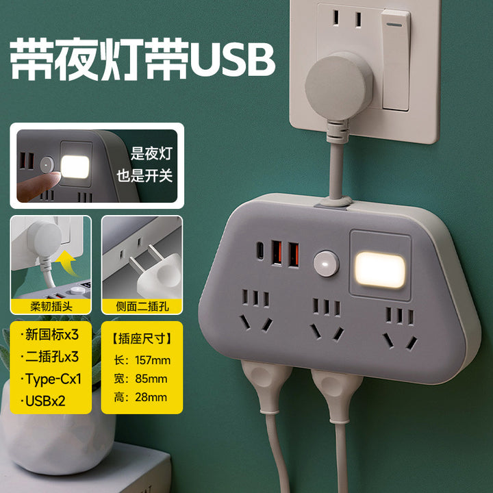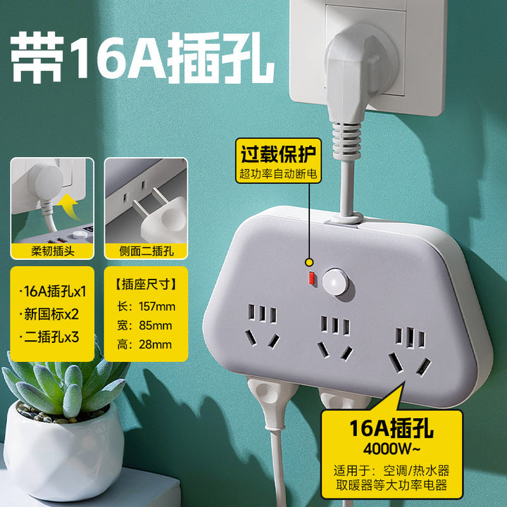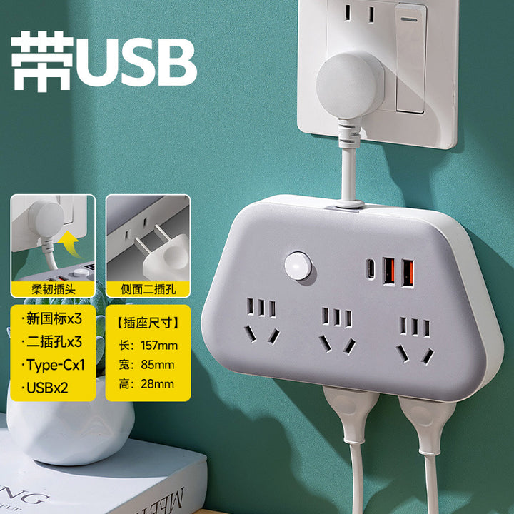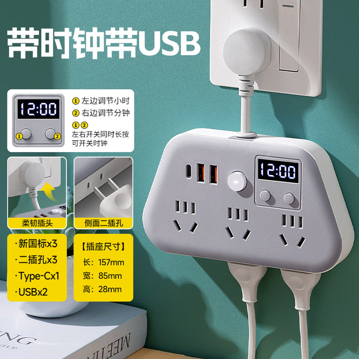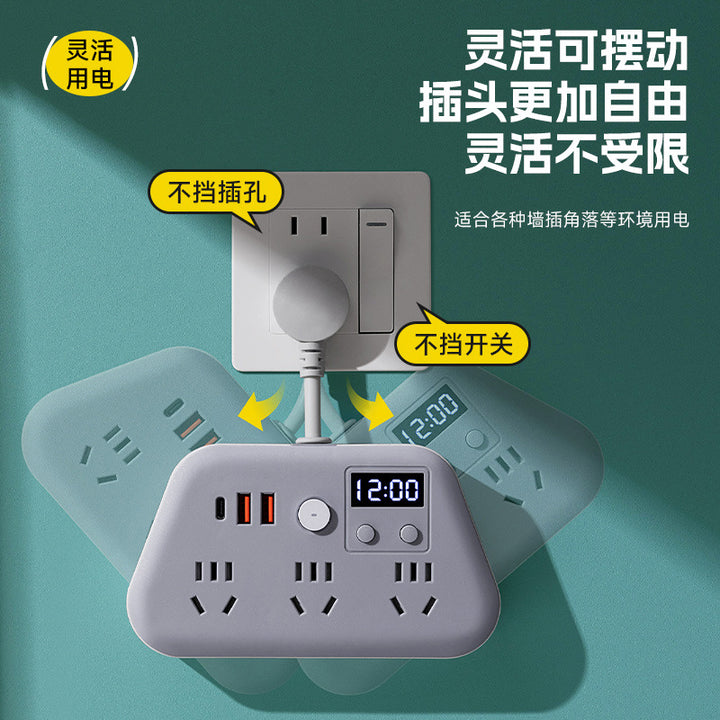 Digital display new national standard office row plug cow multi-function USB socket with cable anti-overload household terminal board power strip