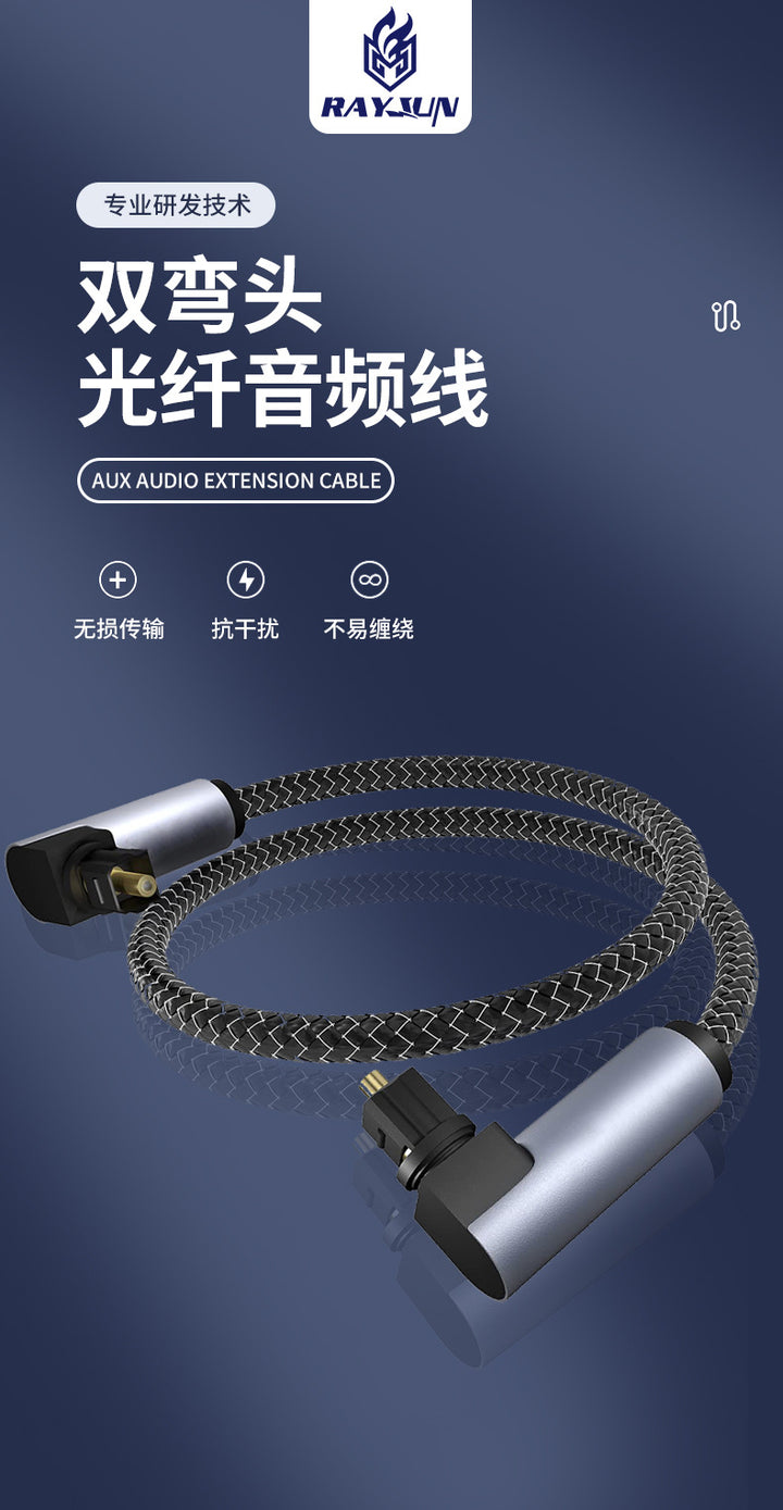 Digital fiber audio output into SPDIF5.1/7.1 power amplifier soundwall 90 degree elbow to elbow fiber