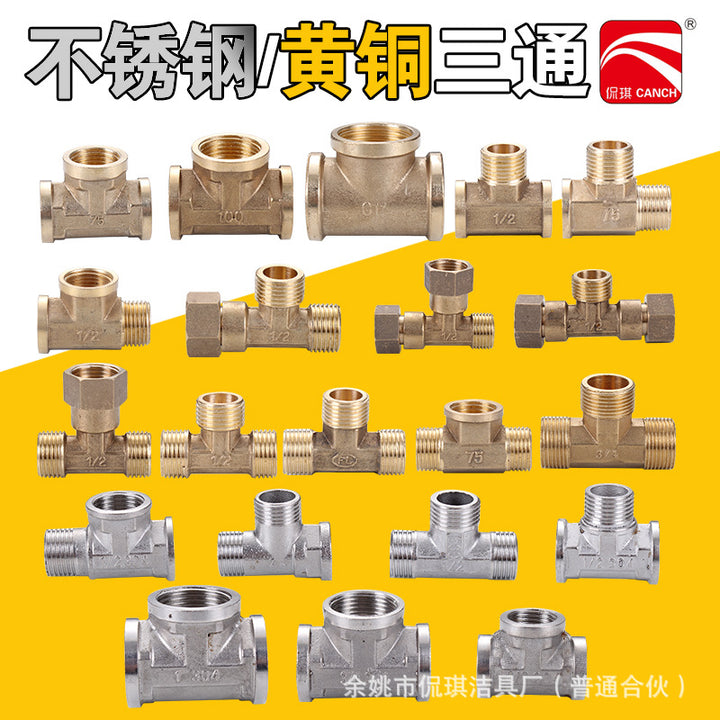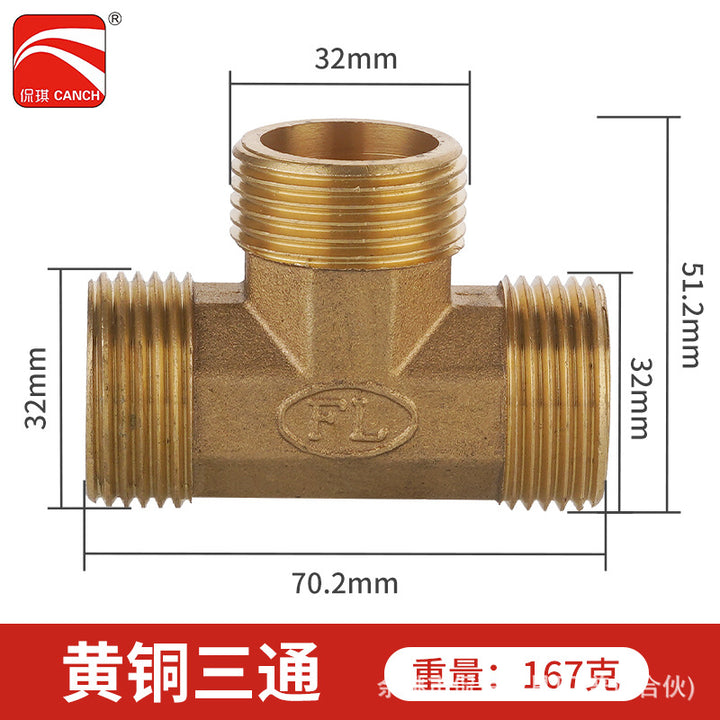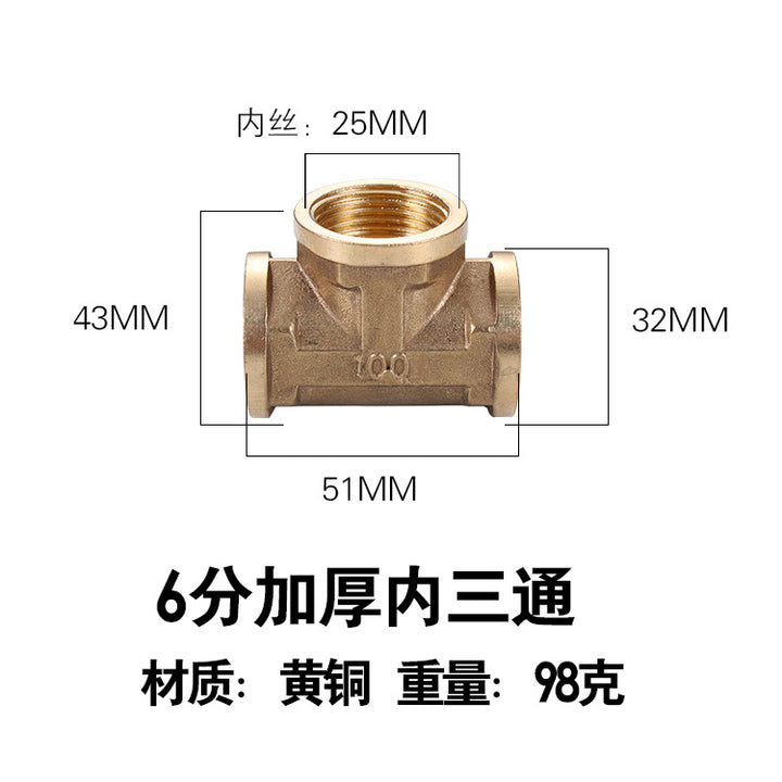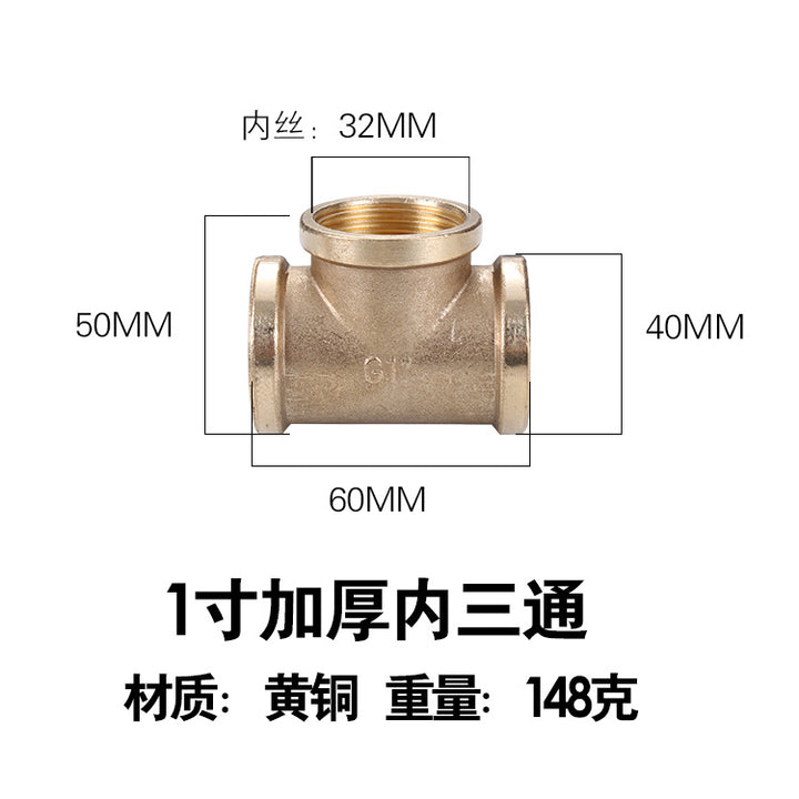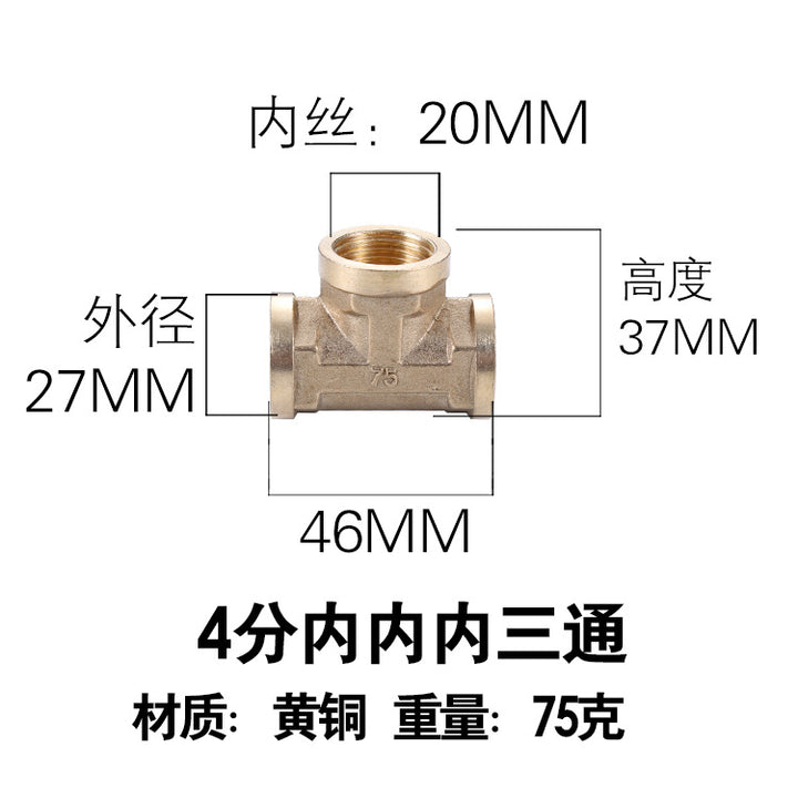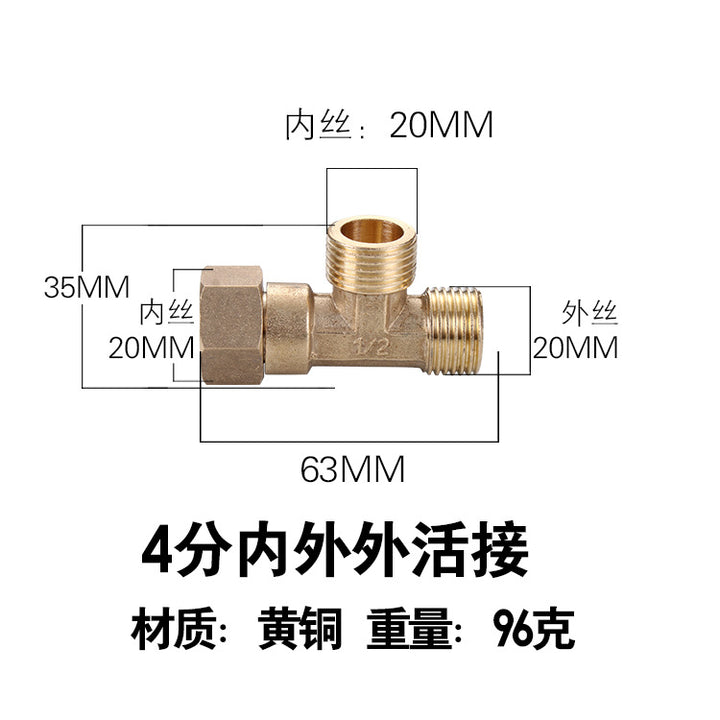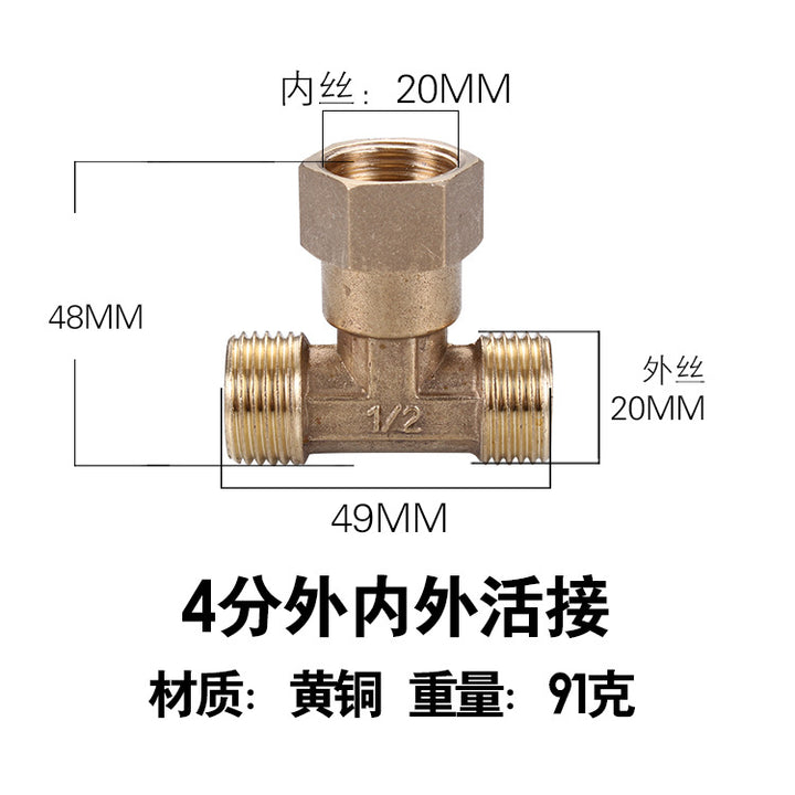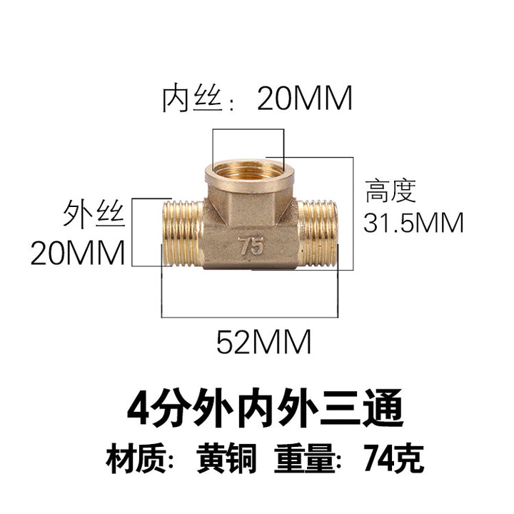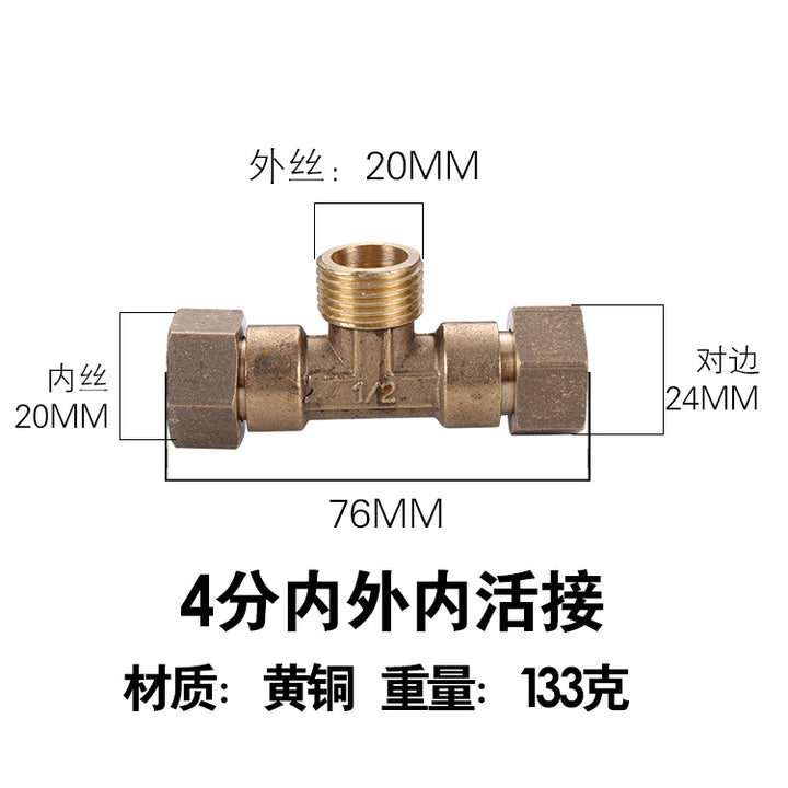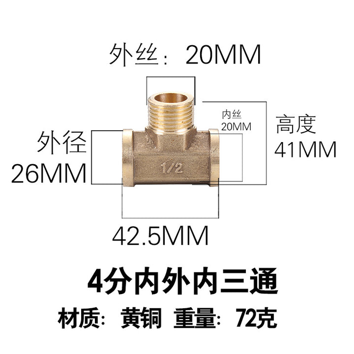 DN15 inner and outer tee, pure copper interface 4 pipe fittings, bellows plumbing pipe gas pipe joint