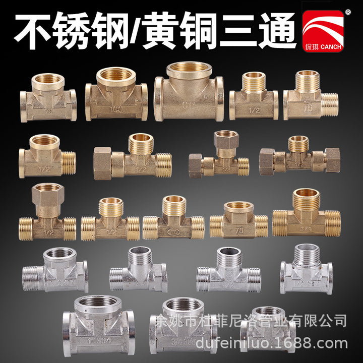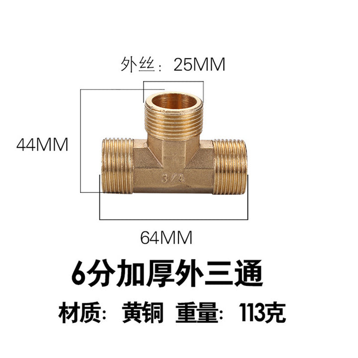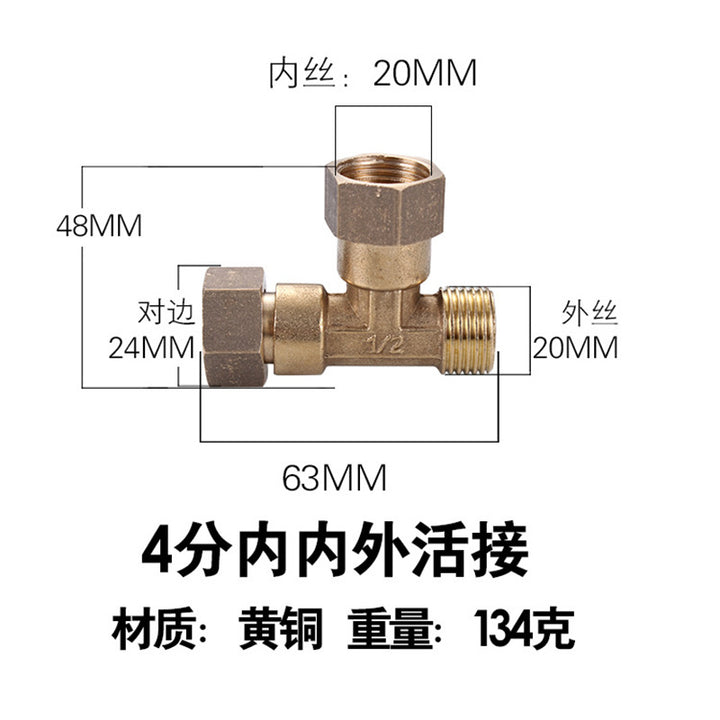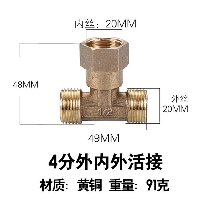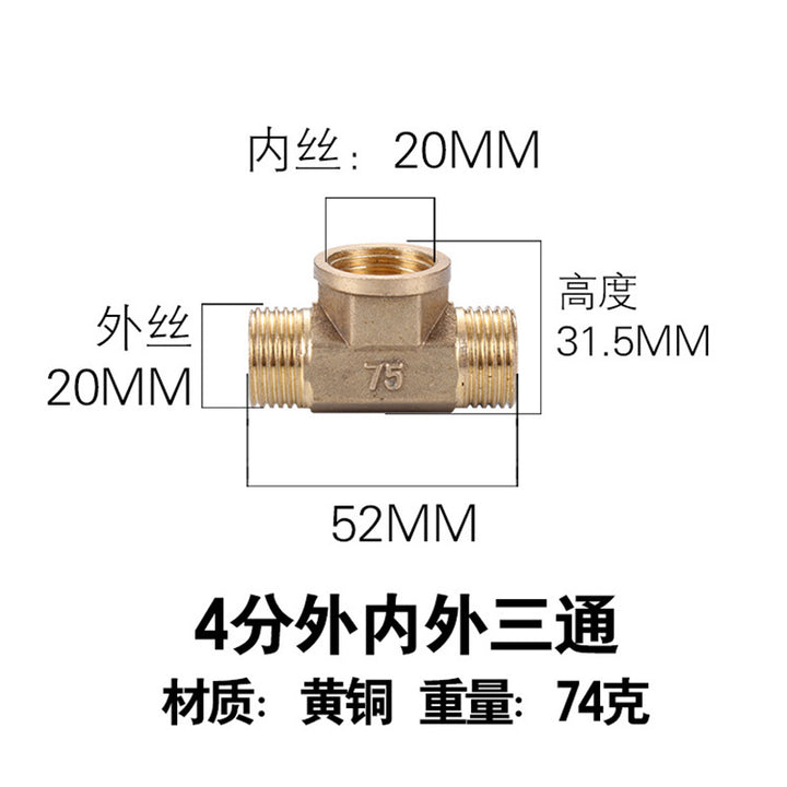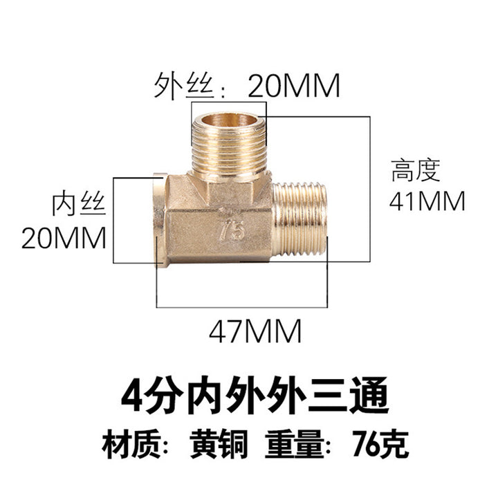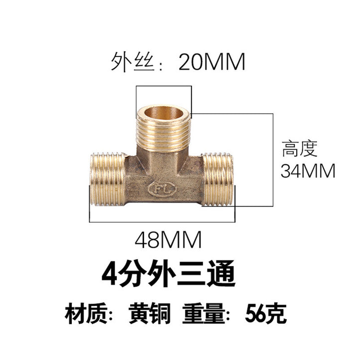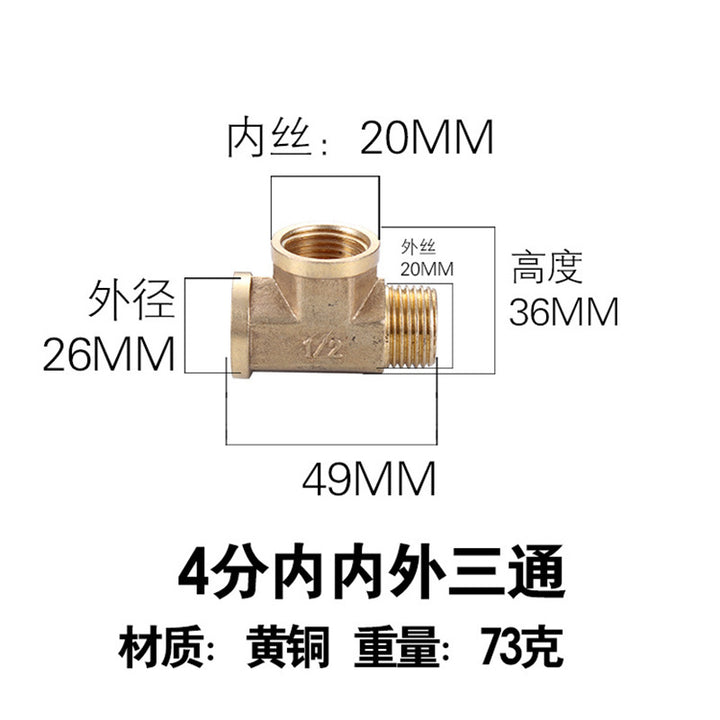 DN15 inner and outer tee, pure copper interface 4 pipe fittings, bellows plumbing pipe gas pipe joint