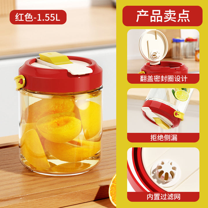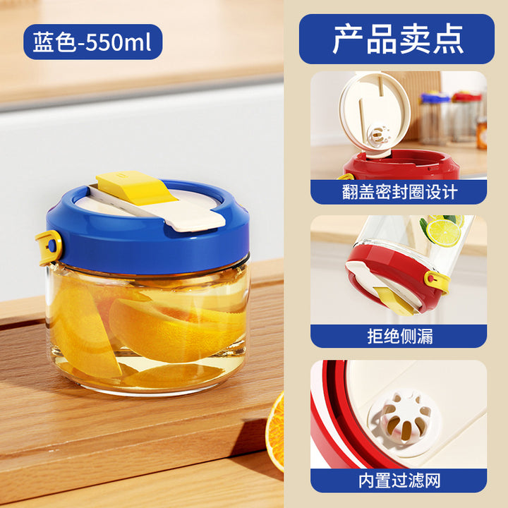 Dopamine fruit tea glass sealed jar thickened double opening with filter outdoor party campin...