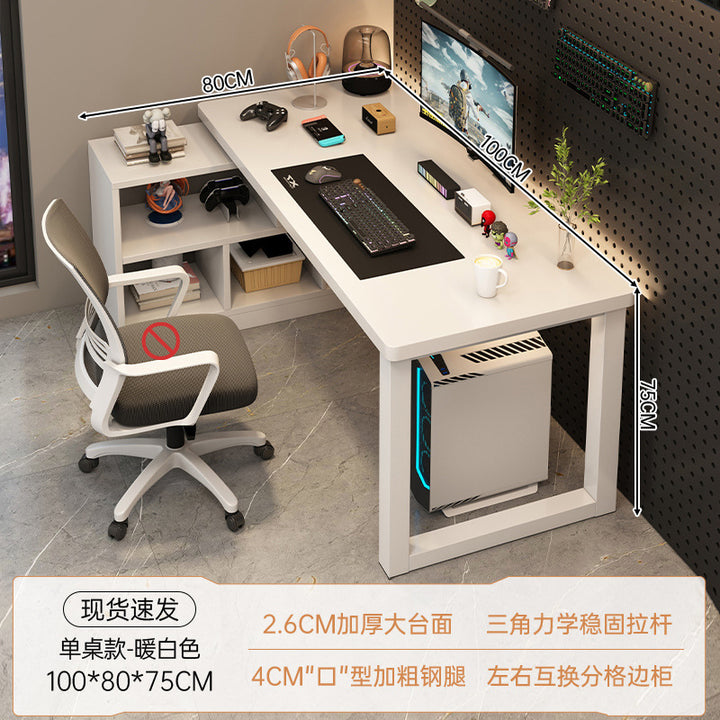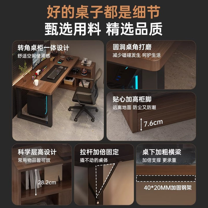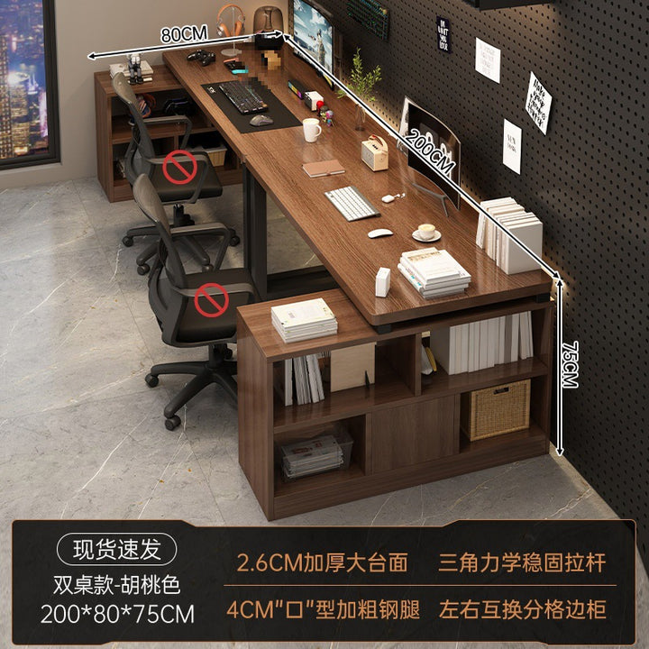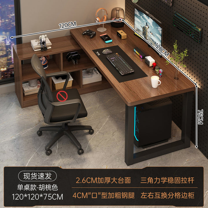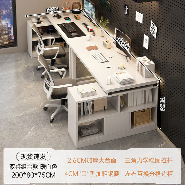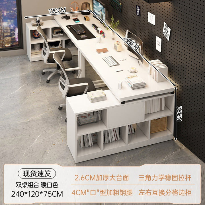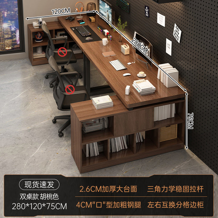 Double computer desk desktop e-sports table L-shaped desk bookshelf integrated table side by ...