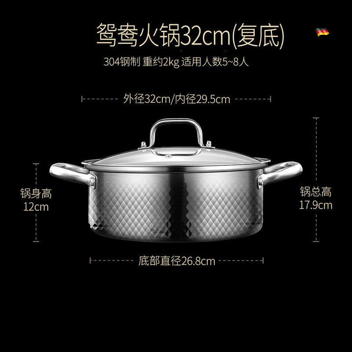 Double grid hot pot 304 Chongqing two-flavor stainless steel shabu pot, mandarin duck pot, integrated pot with skewers of fragrant clear soup pot, ...