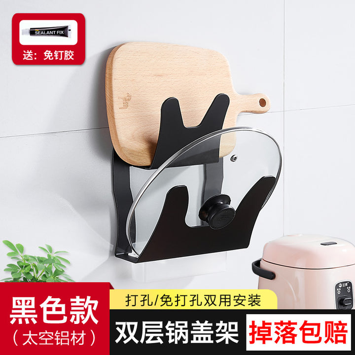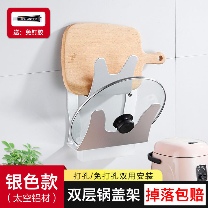 Double-layer lid rack Space aluminum kitchen rack No punching lid storage rack Cutting board Cutting board Shelf