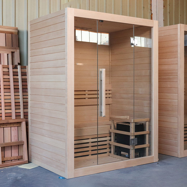 Double-person family hotel B & B integrated prefabricated indoor traditional dry steam sauna, hemlock custom
