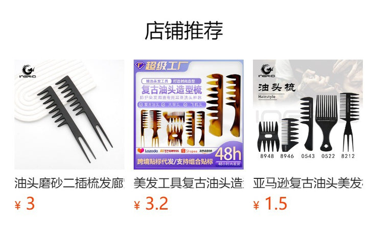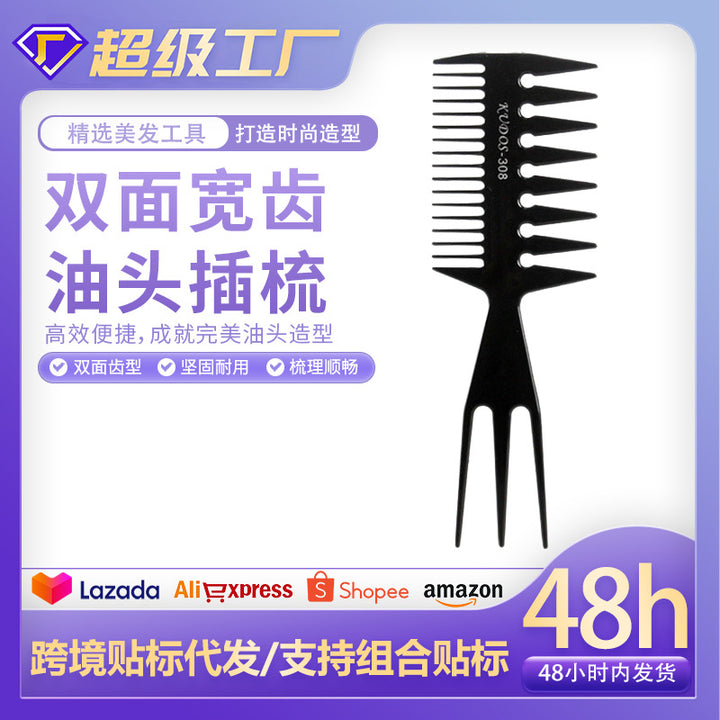 Double-sided wide-toothed oil head plug comb Men's retro oil head comb Hair comb Portable large back hair tool Three plug comb