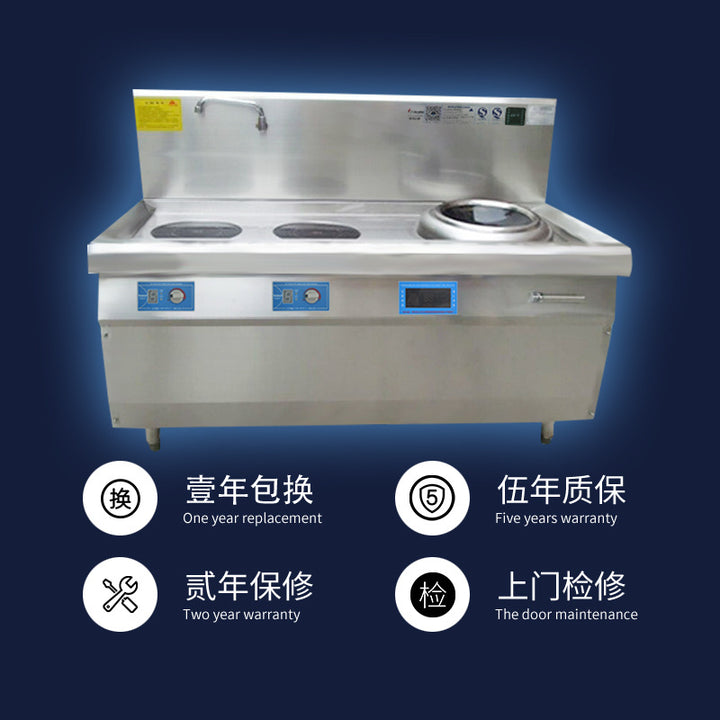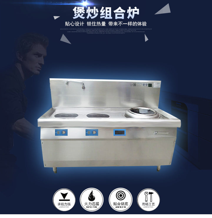 Dr. Zao commercial induction cooker, double fried and one soup stove, two flat and one concave combination electric stove, kitchen utensils and equ...