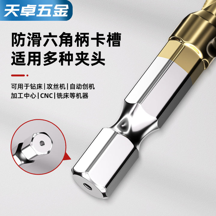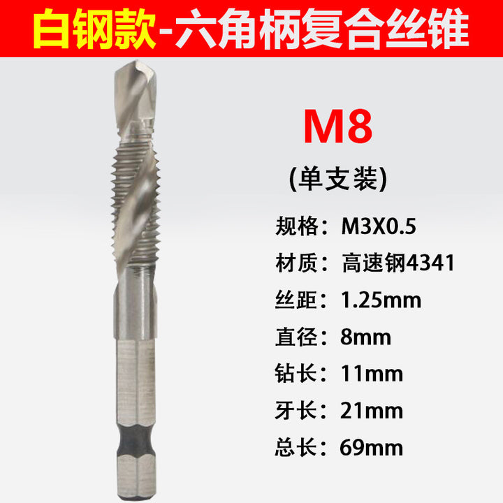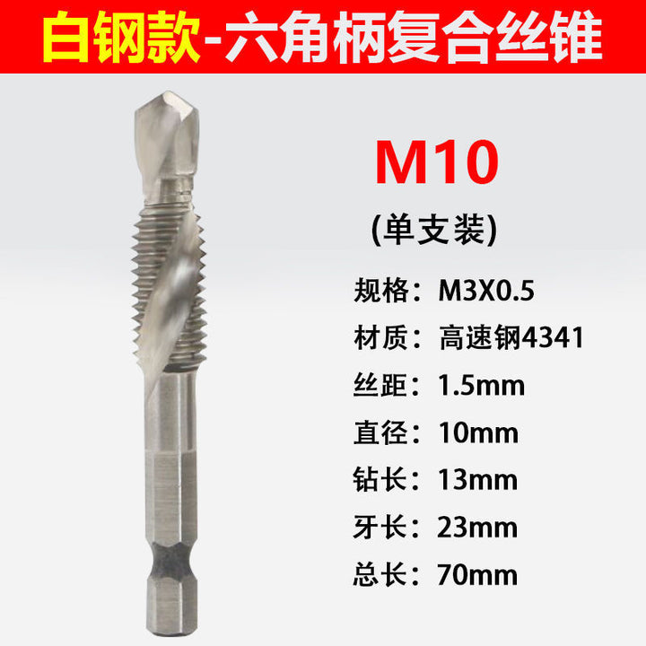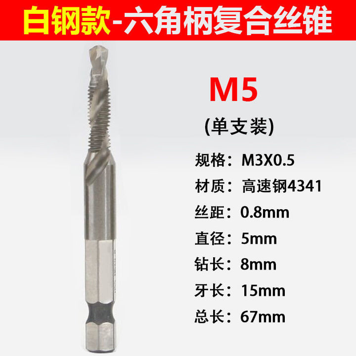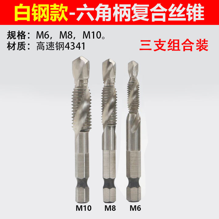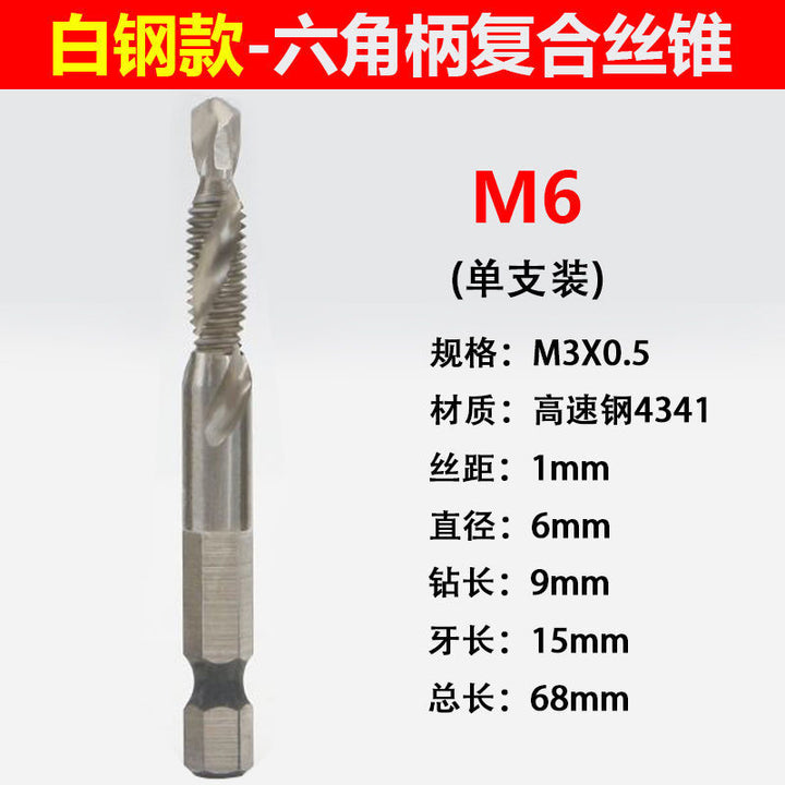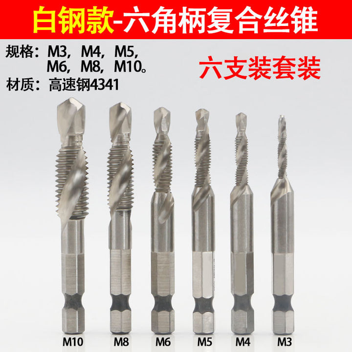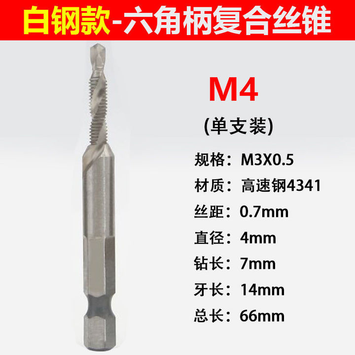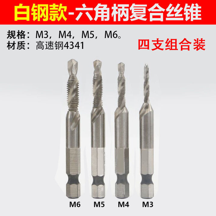 Drilling and tapping machine with wire tapping, titanium-plated hexagonal handle composite tap thread opening electric drill bit tap set
