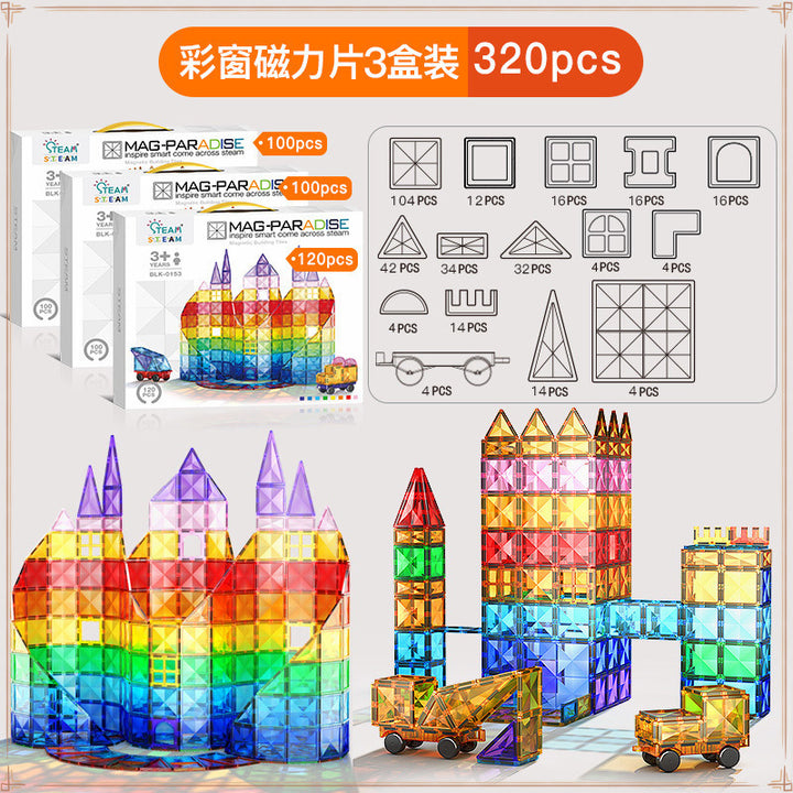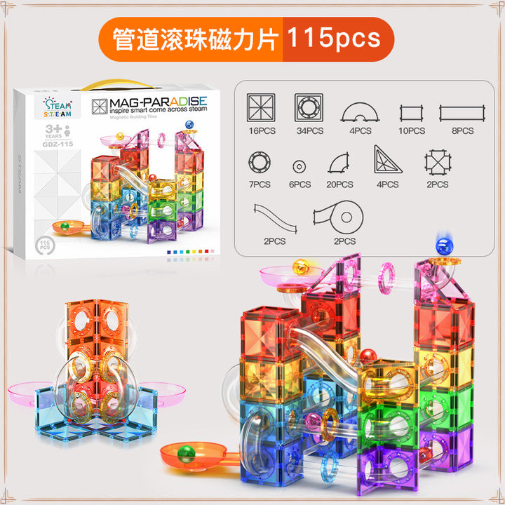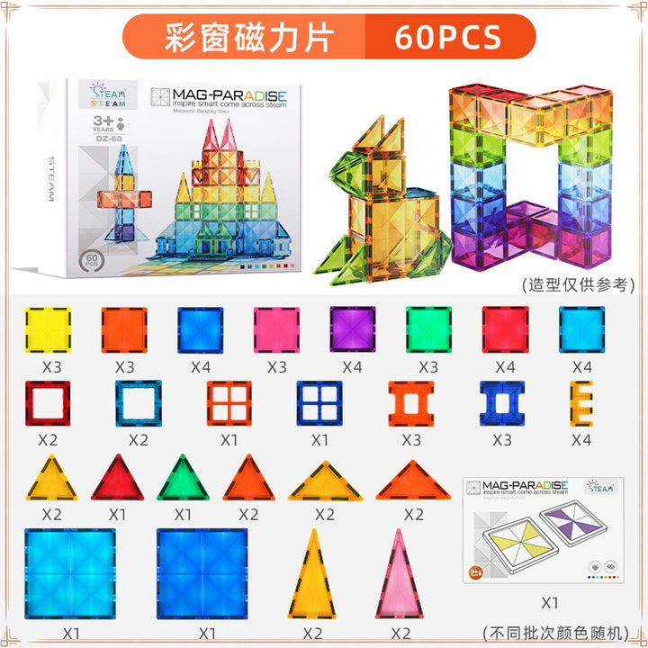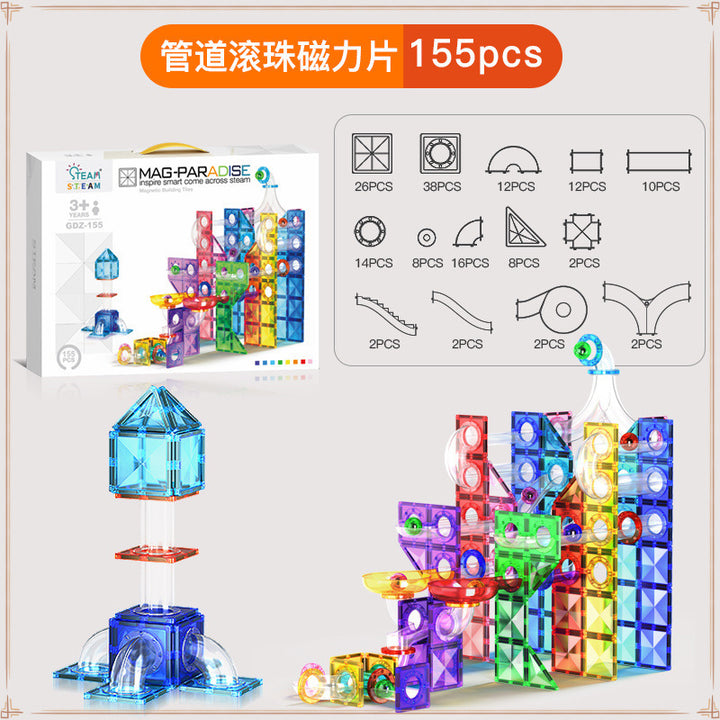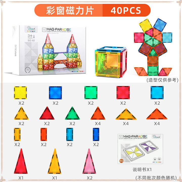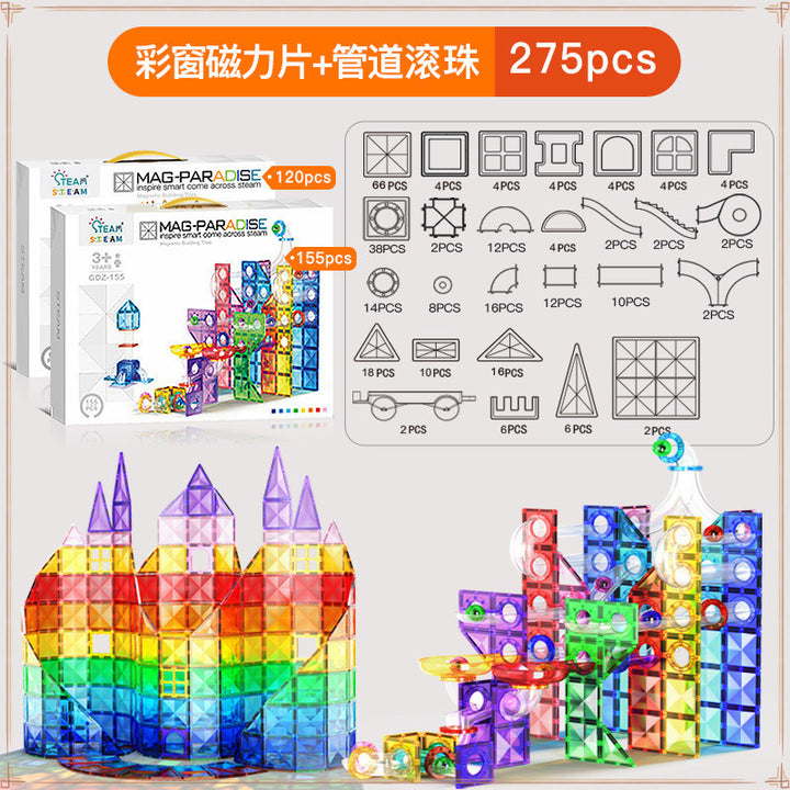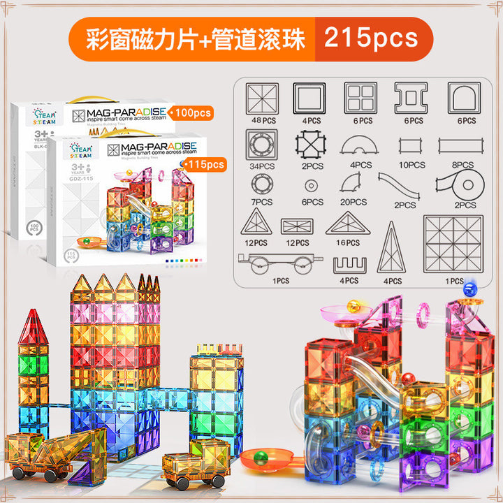 Drilling surface colored window magnetic piece children's toy assembly track tube building block boys and girls strong magnetic puzzle toy treasure
