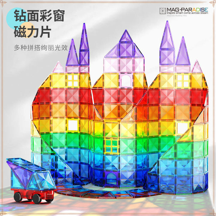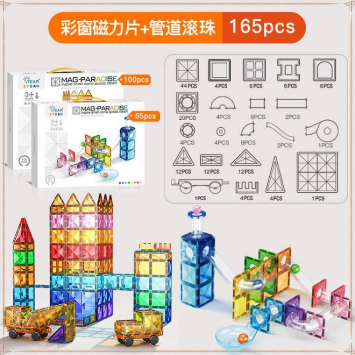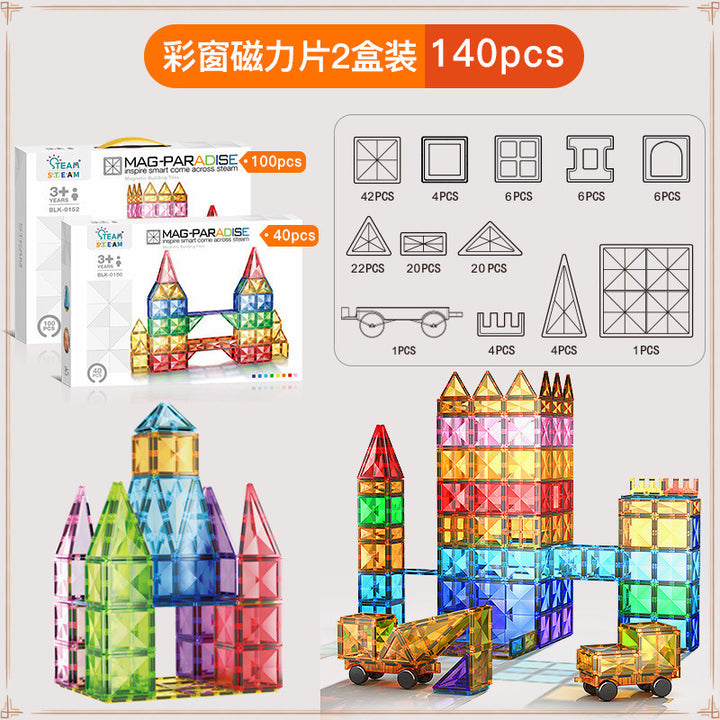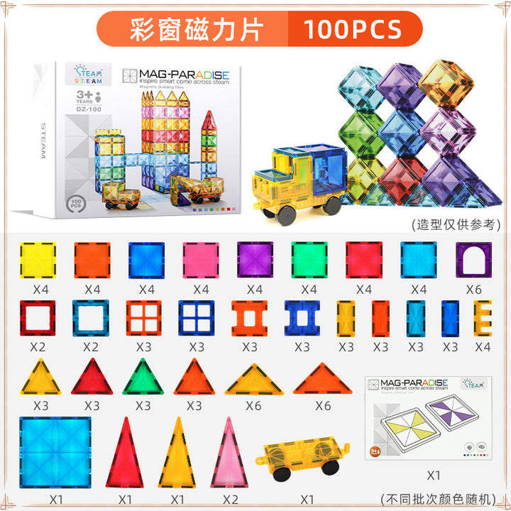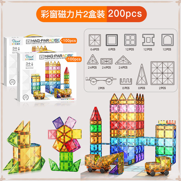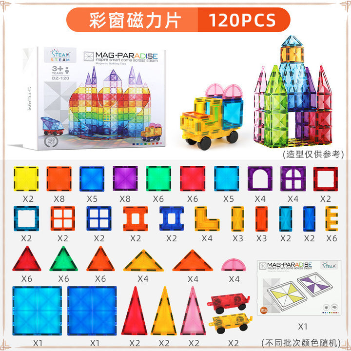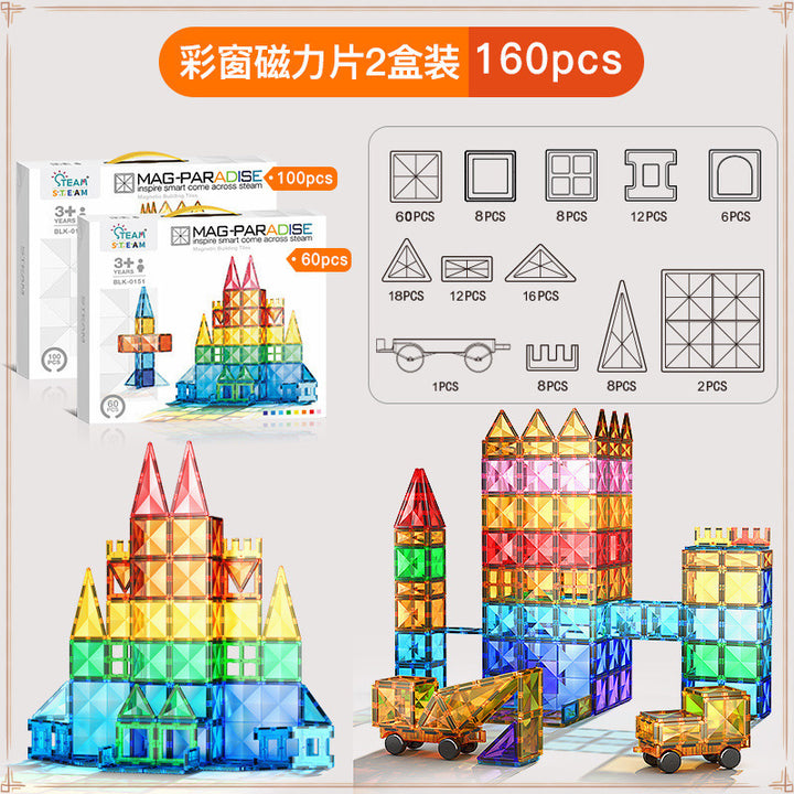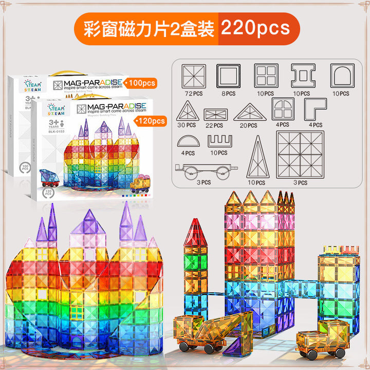 Drilling surface colored window magnetic piece children's toy assembly track tube building block boys and girls strong magnetic puzzle toy treasure
