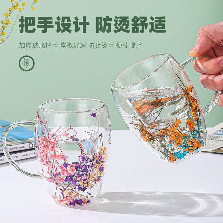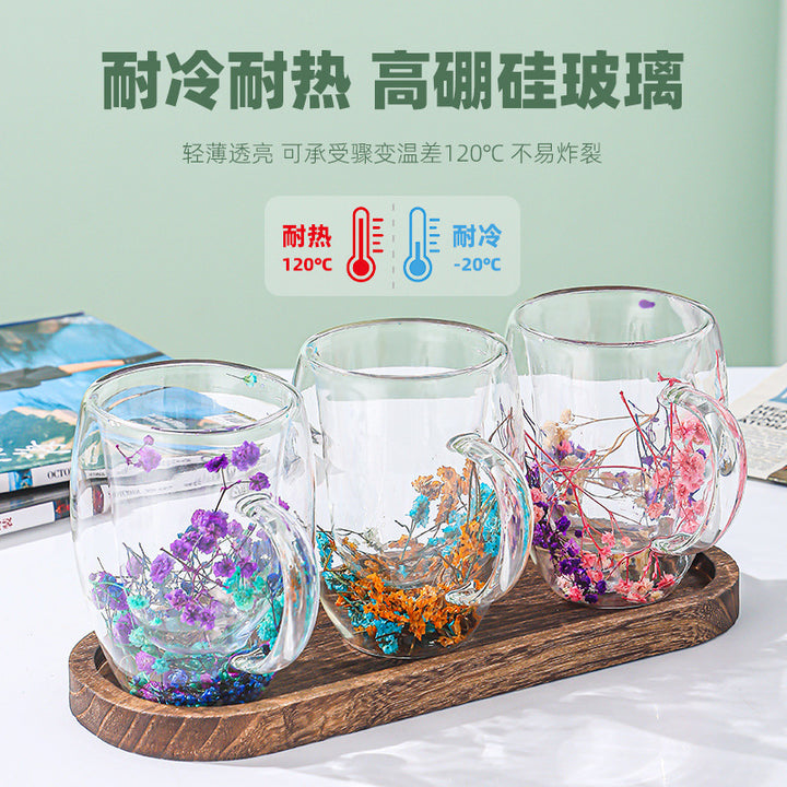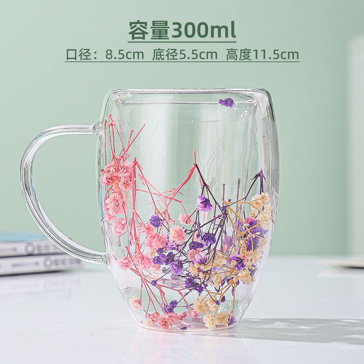 dry flower cup supply milk cup double glass 10oz creative water cup high value coffee cup