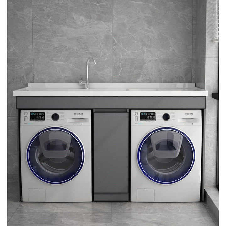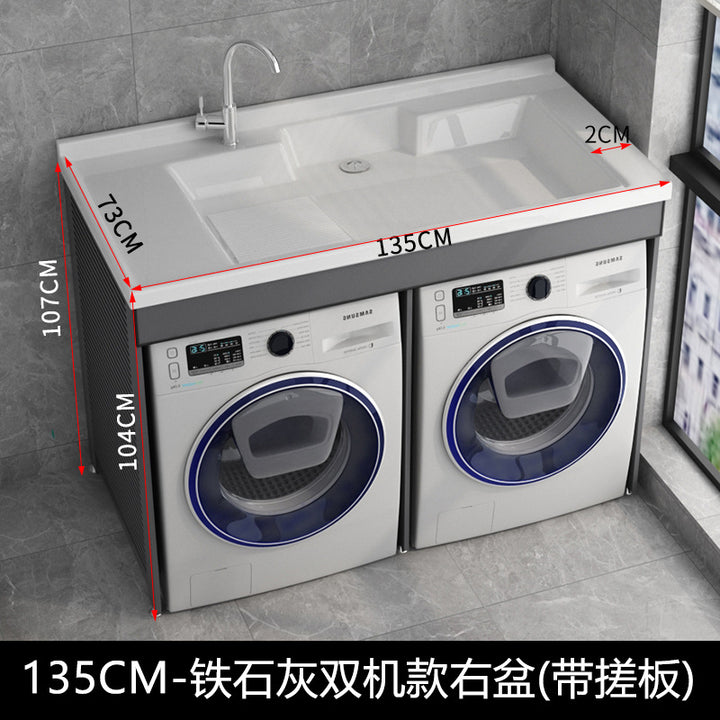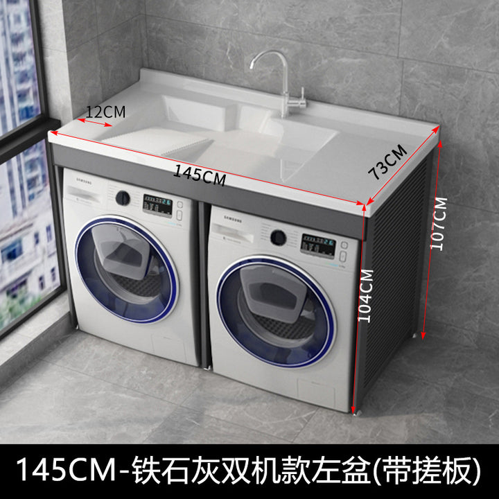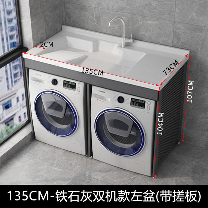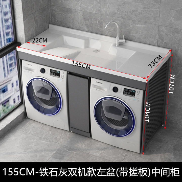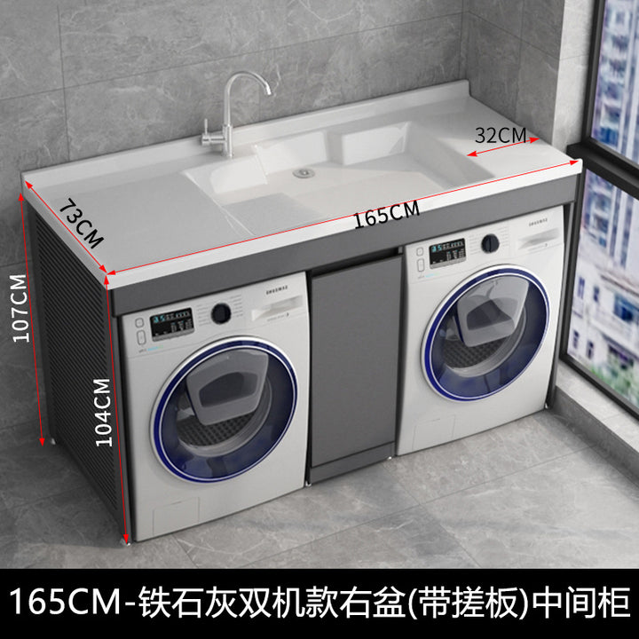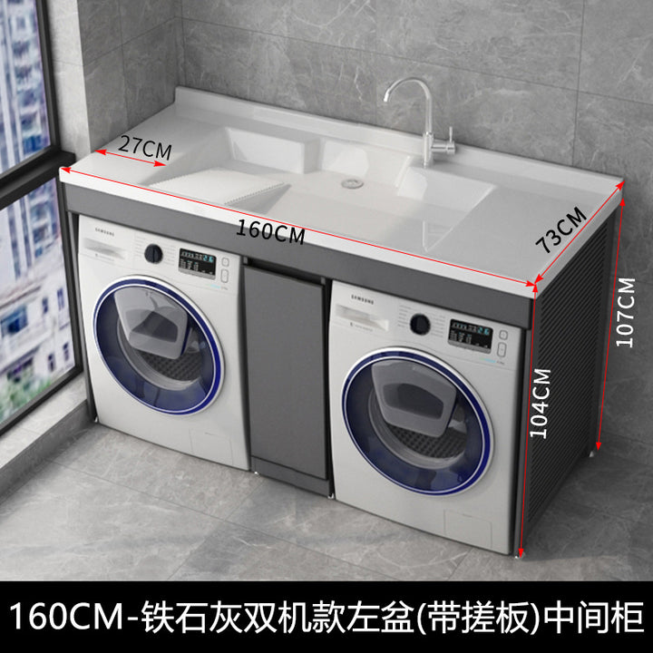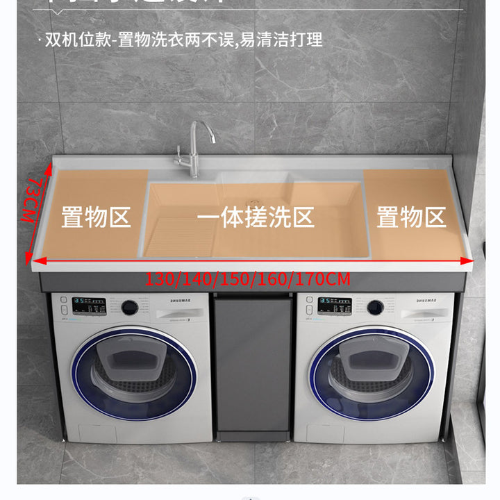 Dual position laundry cabinet dryer combination with rubbing board laundry pool roller protective cover space aluminum integrated cabinet balcony