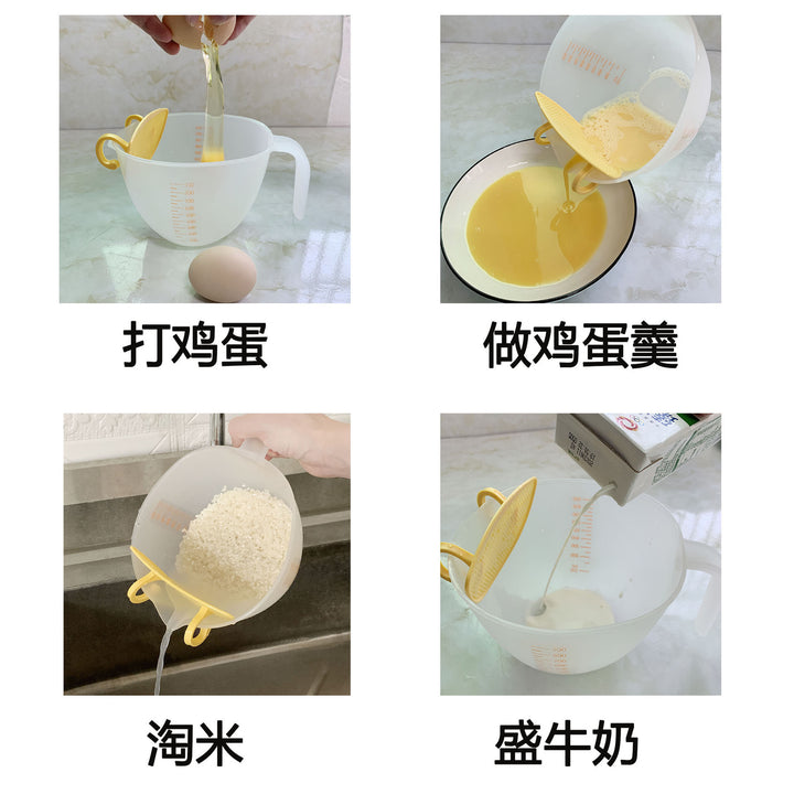Egg beating filter measuring cup Food grade with graduated egg beating cup Plastic baffle Multifunctional measuring cup Kitchen rice bowl