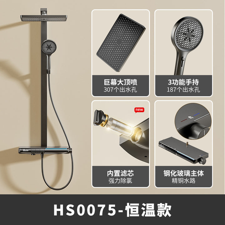 EGNS Angonis thermostatic shower shower set, large top spray screen, piano button shower full...