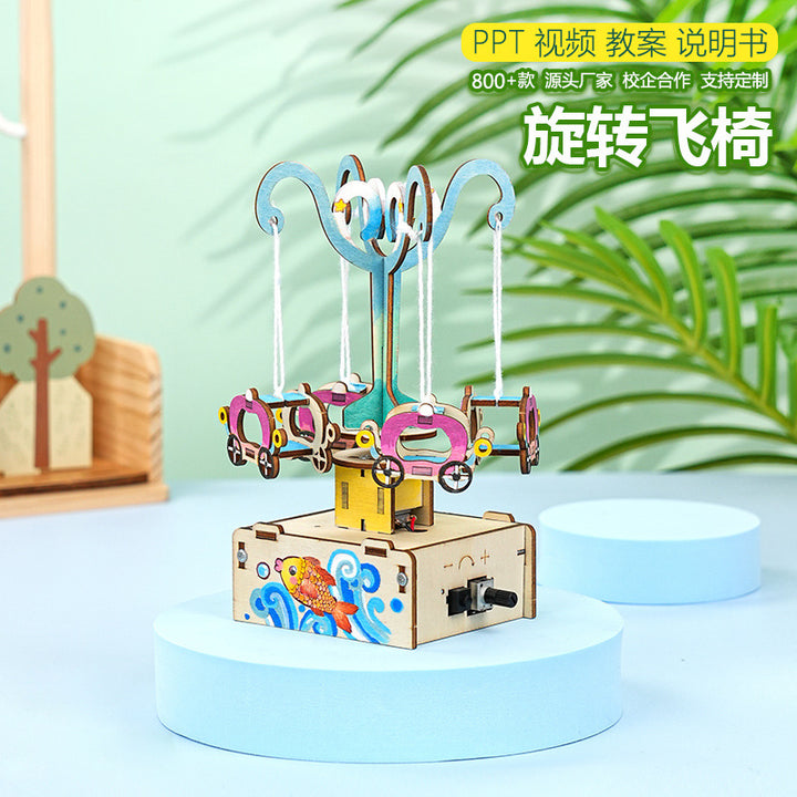Electric speed control rotating flying chair technology small production wooden handmade DIY scientific experiment puzzle STEAM teaching aid bag