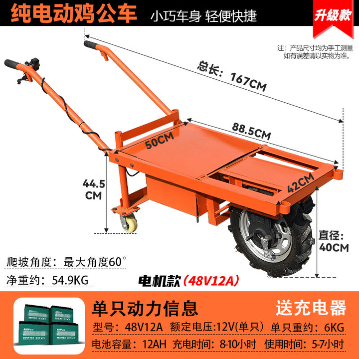 Electric trolley climbing agricultural small truck orchard transportation pulling bricks salad manure feeding truck three wheels