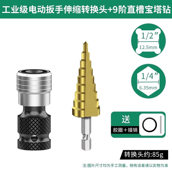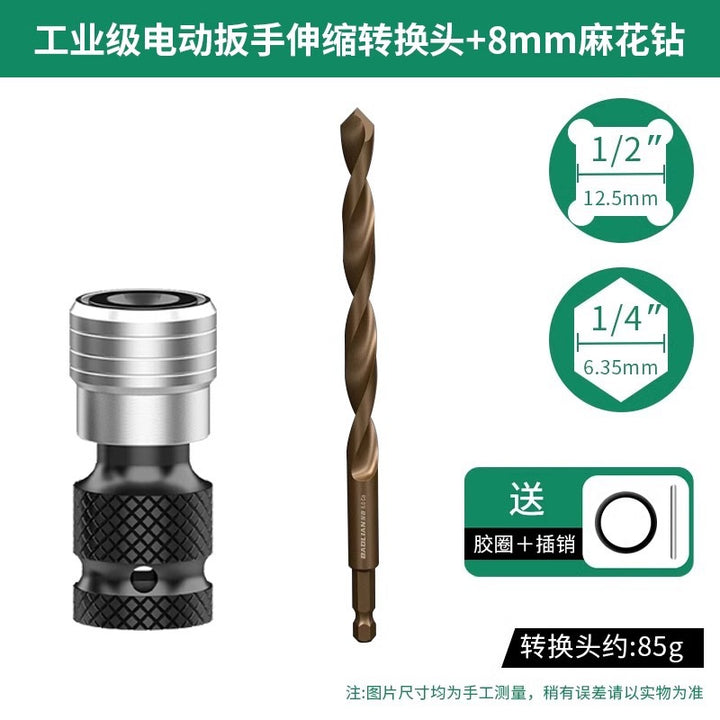 Industrial grade electric wrench telescopic conversion head, Industrial Retractable Converters - Pack of 5, Industrial grade electric wrench telescopic conversion head + 9-step straight groove pagoda drill, Industrial grade electric wrench telescopic conversion head + 6mm extended eccentric drill, 工业级电动扳手伸缩转换头+8mm麻花钻, 工业级电动扳手伸缩转换头+18mm支罗钻 |
