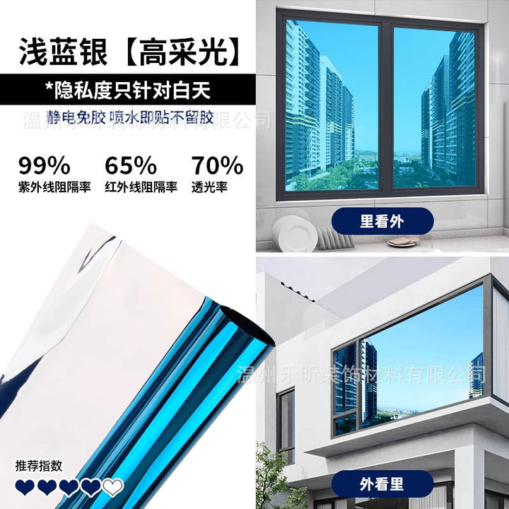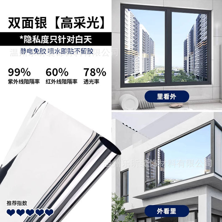 Electrostatic glue-free - double-sided silver [natural lighting, sun protection and heat insulation], Electrostatic glue-free - light blue silver [soft light, sun protection and heat insulation], Electrostatic glue-free - dark blue silver [anti-privacy, sun protection and heat insulation], Electrostatic glue-free - magic black [anti-privacy, sun protection and heat insulation] |