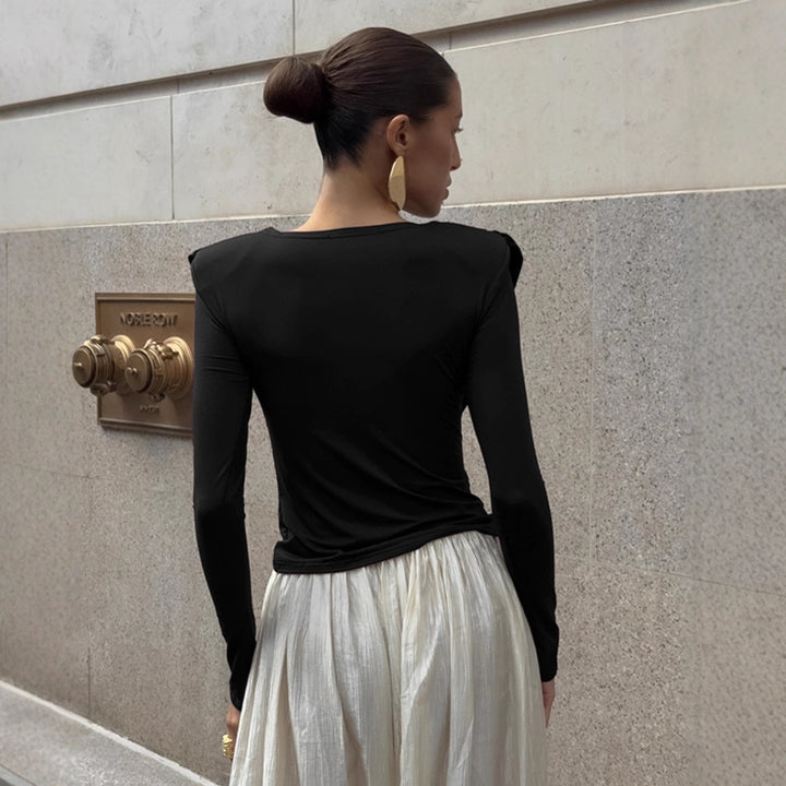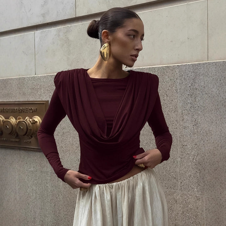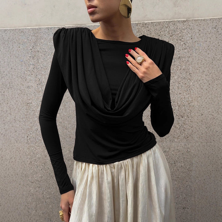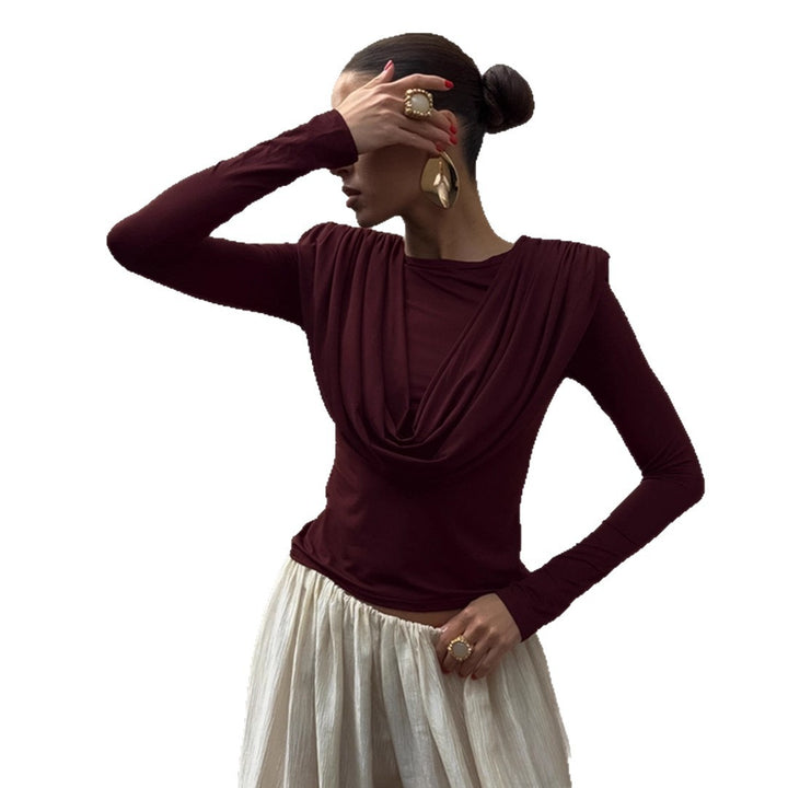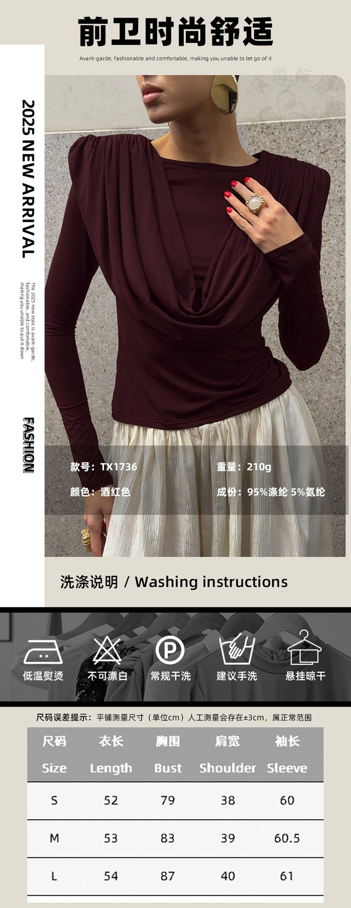 Elegant drape crew neck long-sleeved top women's 2025 winter fashion knitted bottoming T-shirt temperament slim-fitting bottoming shirt