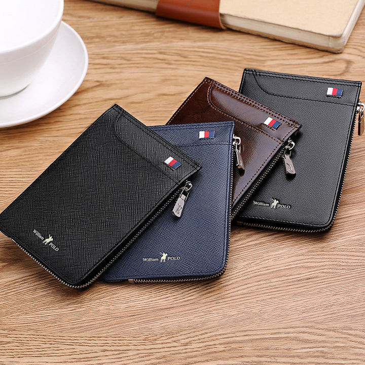 Emperor Paul card bag men's ultra-thin leather multi-card wallet men's short zipper cowhide card bag card holder wholesale