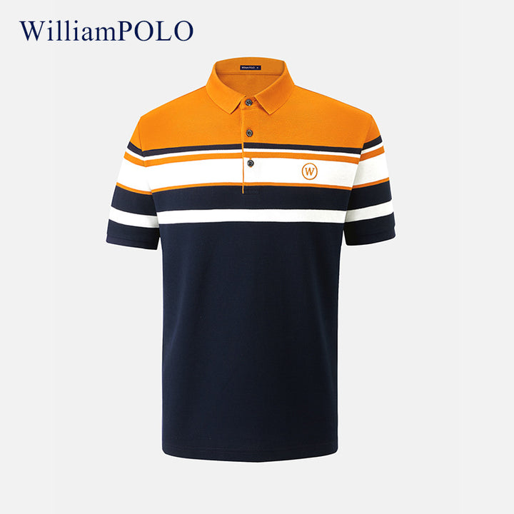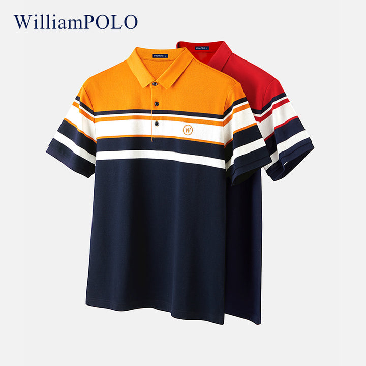 Emperor Paul Summer Short Sleeve T-Shirt Men's Lapel Cotton POLO Shirt Men's Striped Men's Breathable Top Thin