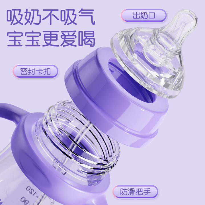 English boxed baby bottle anti-drop and leak-proof wide diameter pp bottle with handle anti-choking and anti-flatulence bottle wholesale