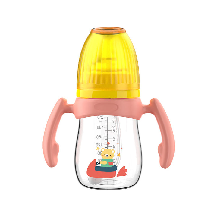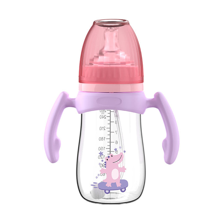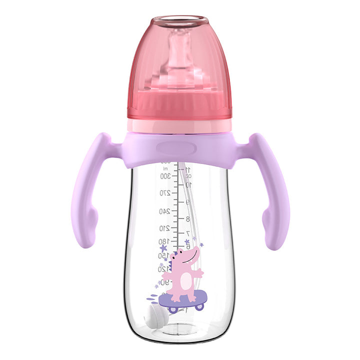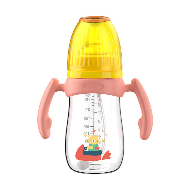 English boxed baby bottle baby wide diameter anti-choking and anti-flatulence PP bottle with handle and straw bottle