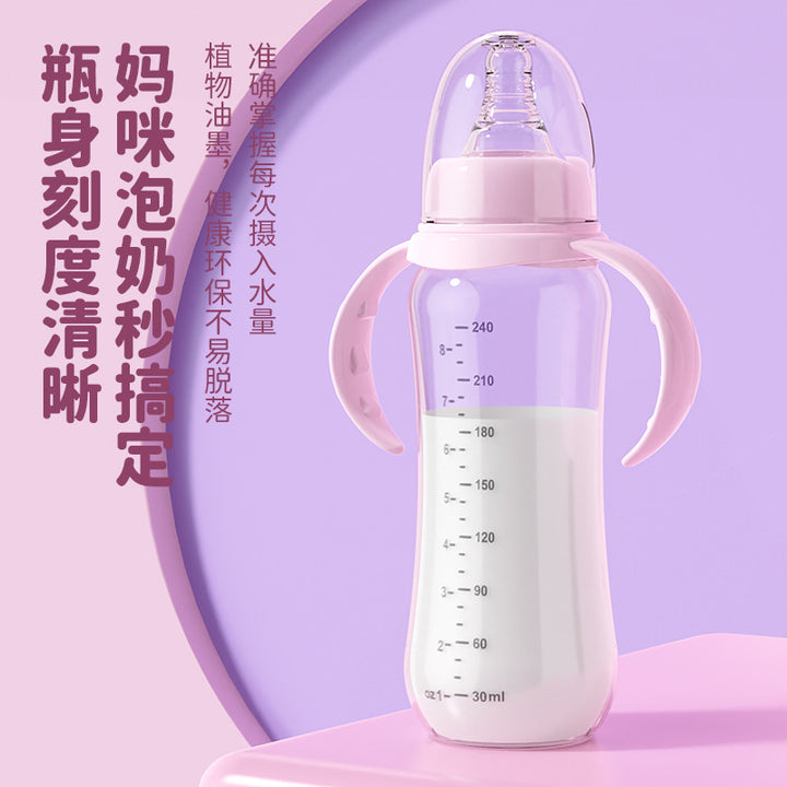 English boxed baby bottle, newborn anti-drop pp bottle, baby anti-choking and anti-flatulence with handle mark mouth bottle