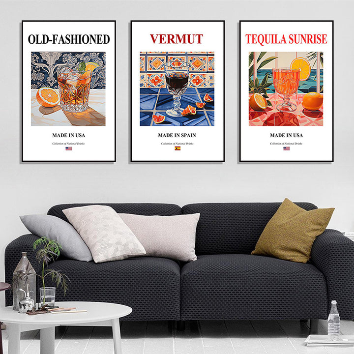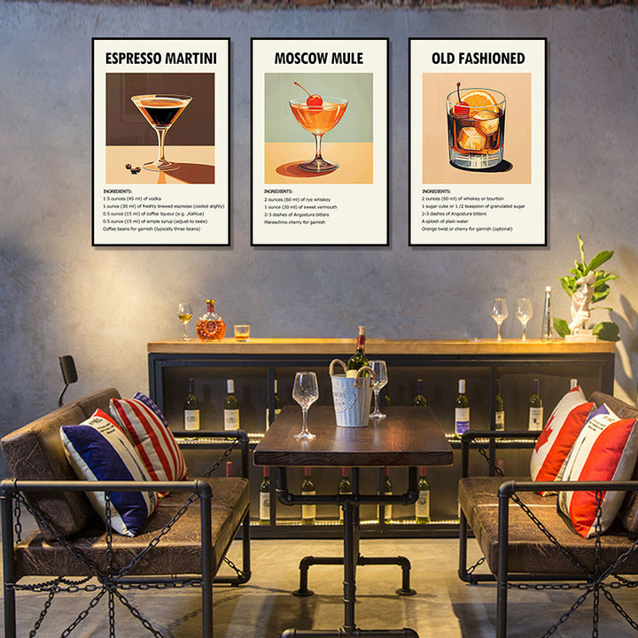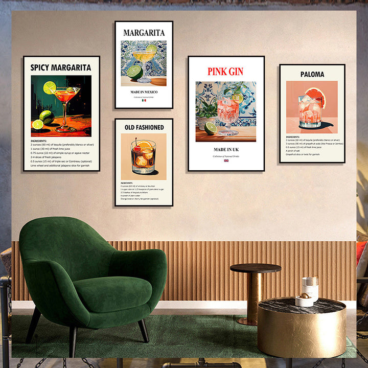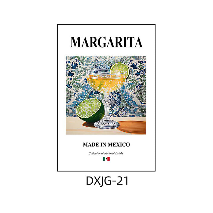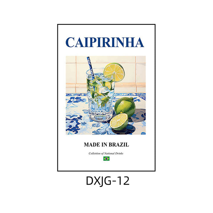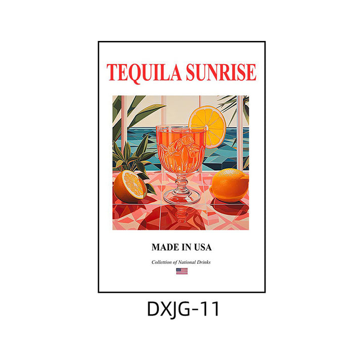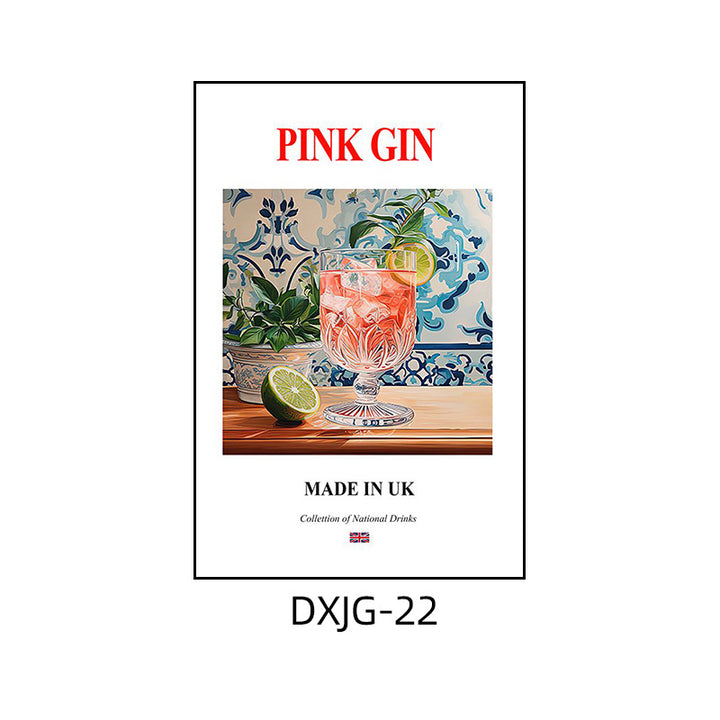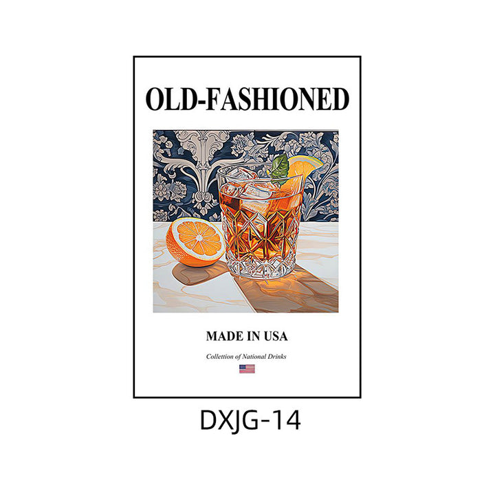 English hand-painted cocktail decorative painting bar bar bar western restaurant bartending poster whiskey fruit drink hanging painting