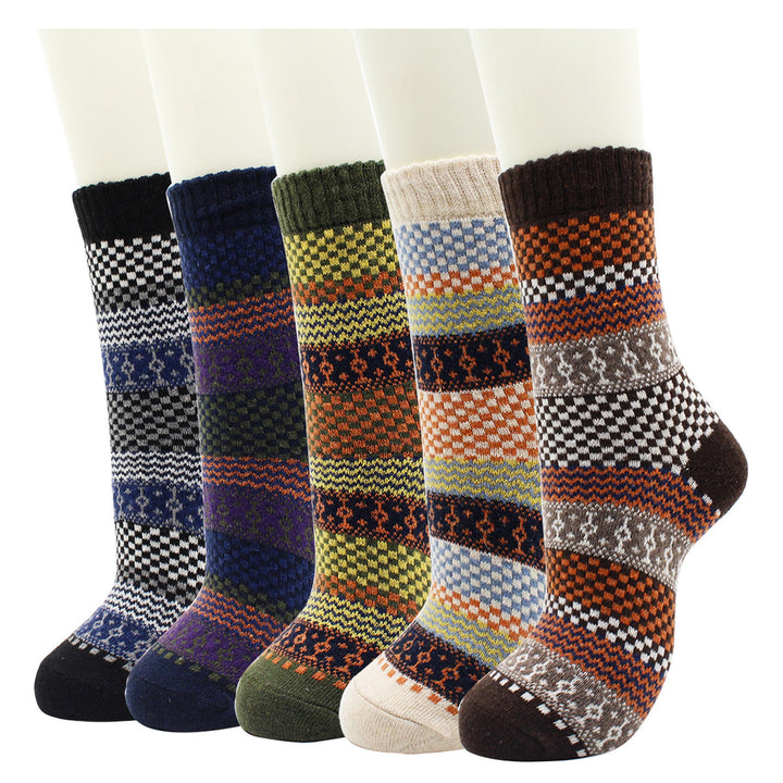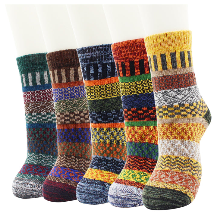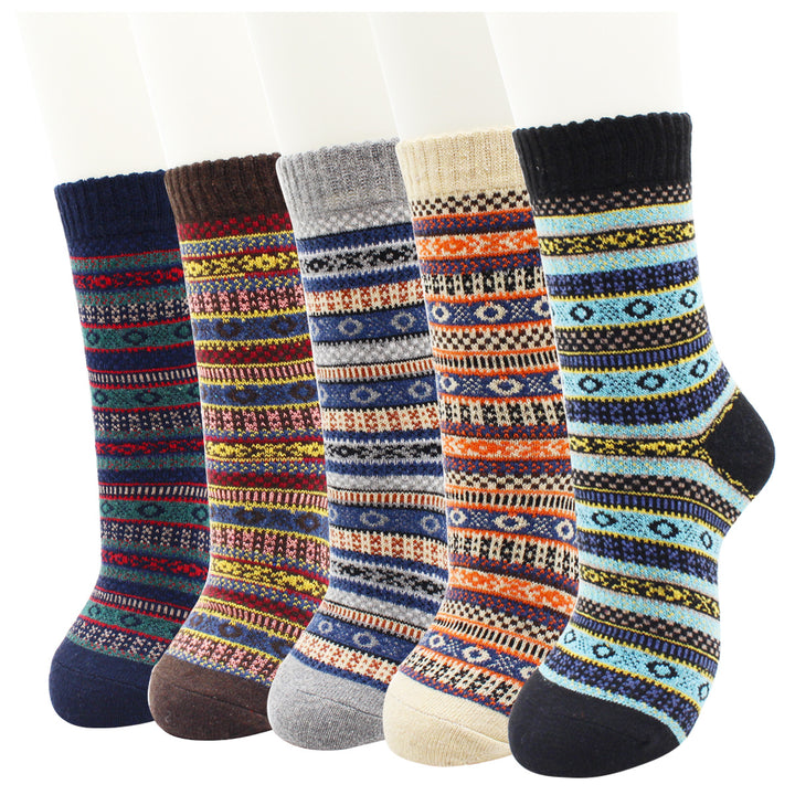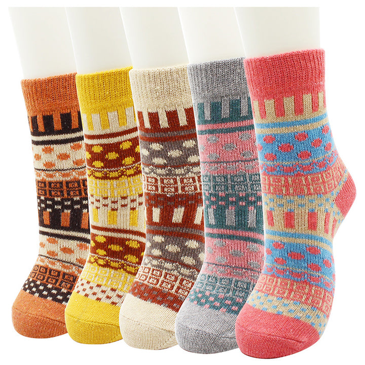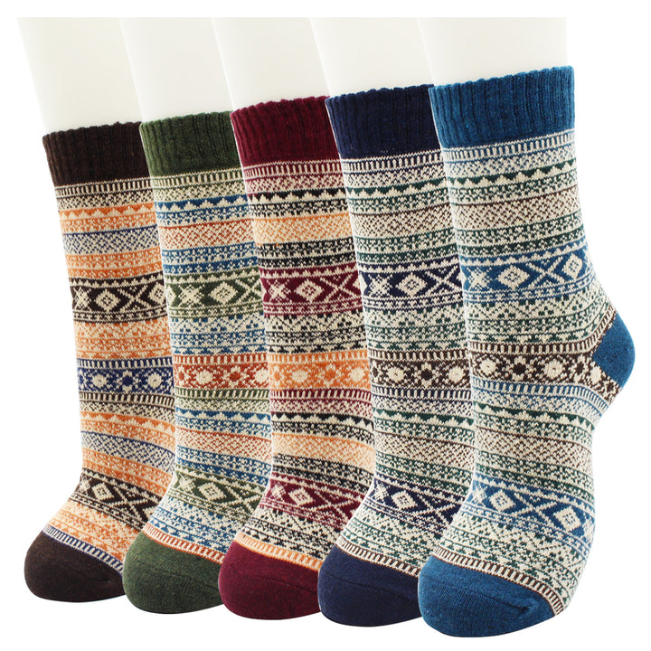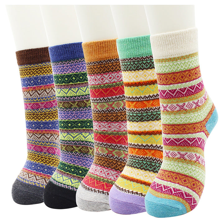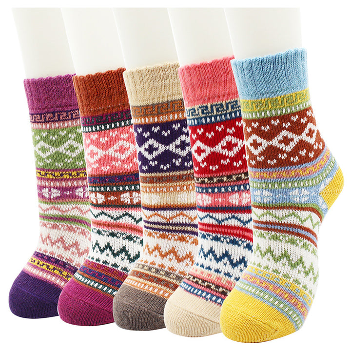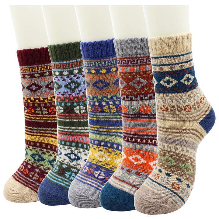 Ethnic style socks women's thickened cold-proof and warm medium tube socks rabbit wool blended retro geometric color matching terry socks