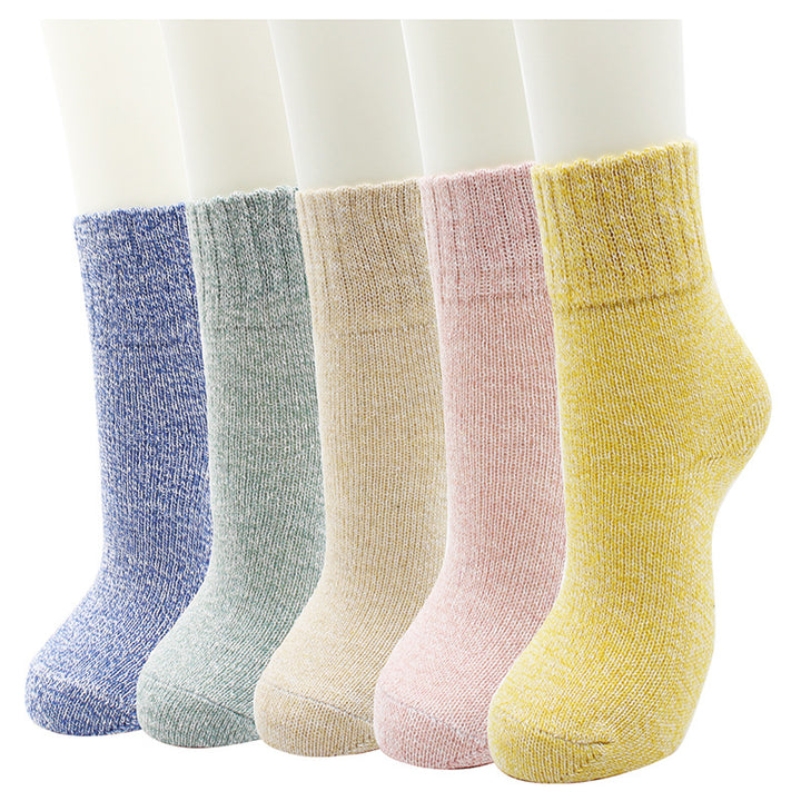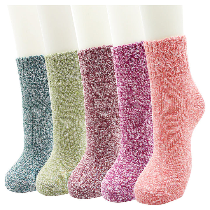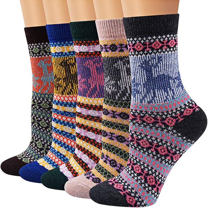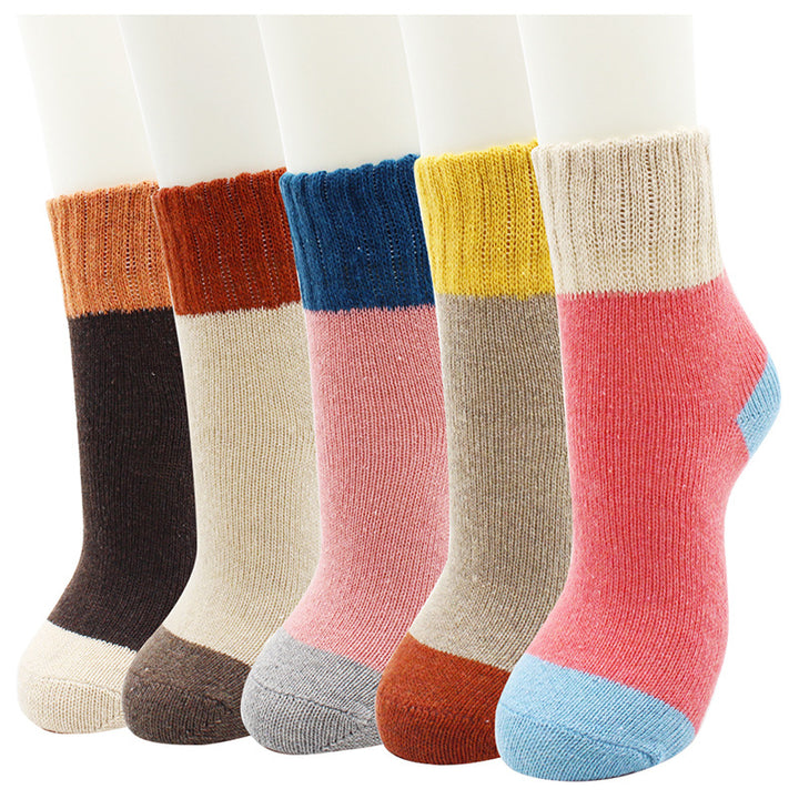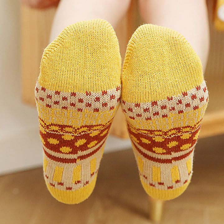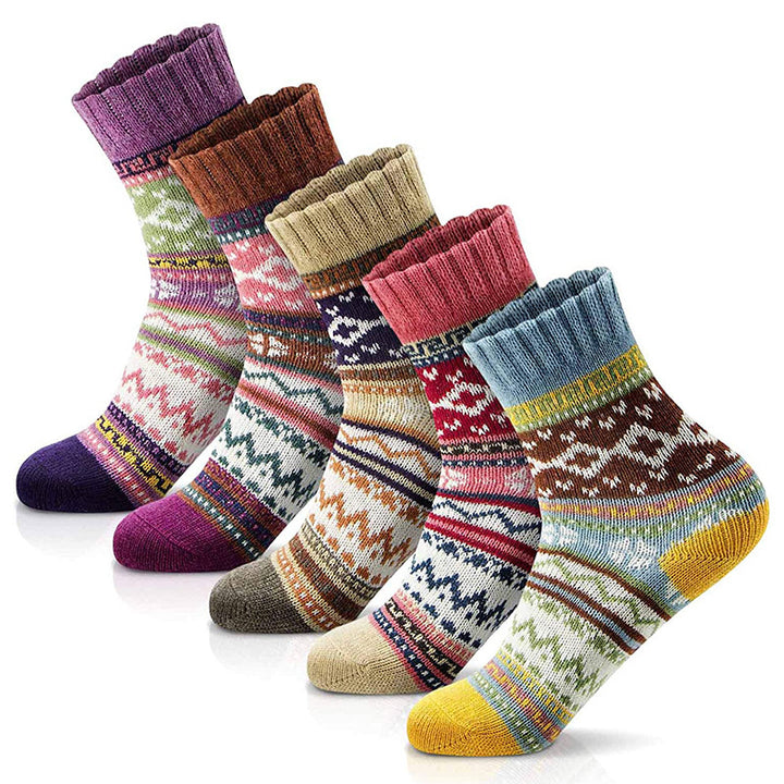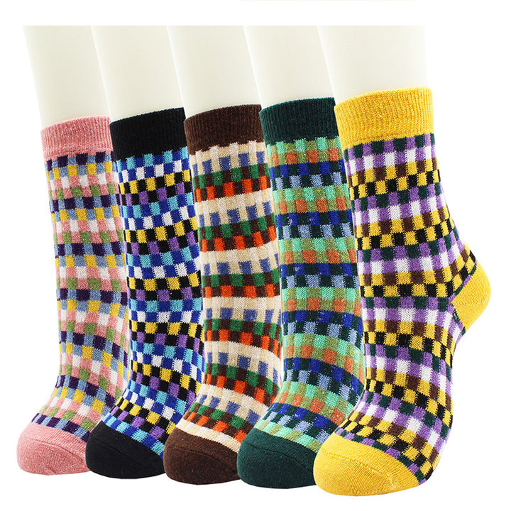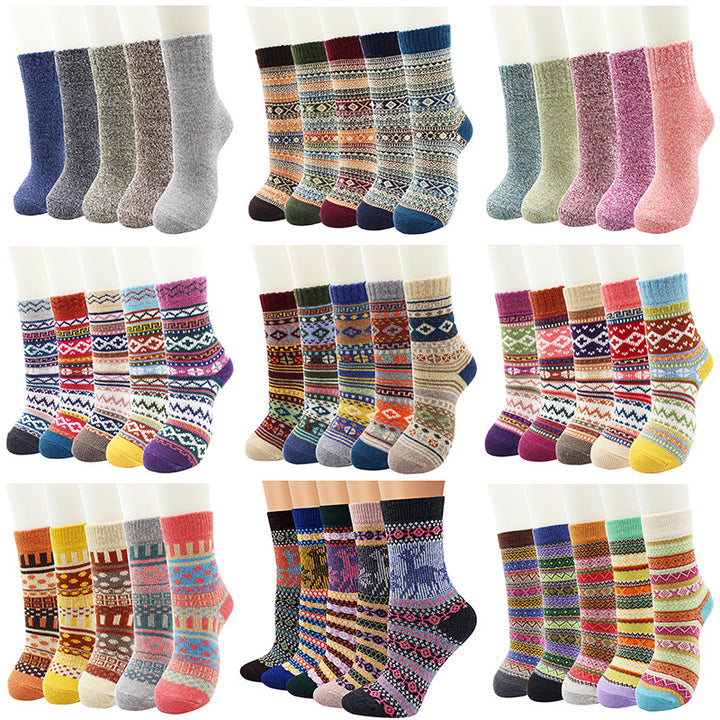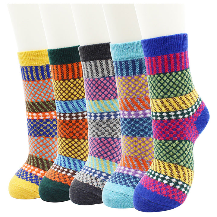 Ethnic style socks women's thickened cold-proof and warm medium tube socks rabbit wool blended retro geometric color matching terry socks