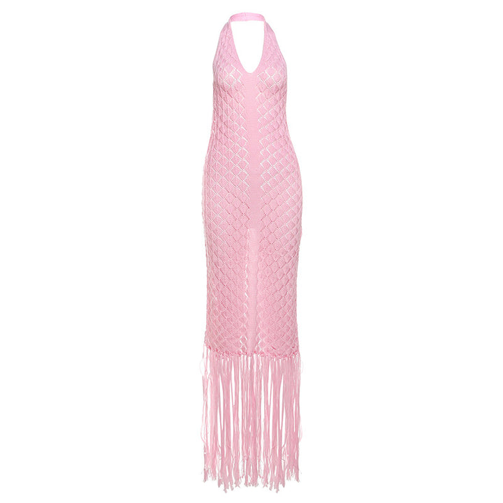 Europe, America 2025 summer new beach skirt women's solid color sexy knitted beach group blouse sunscreen knitted dress