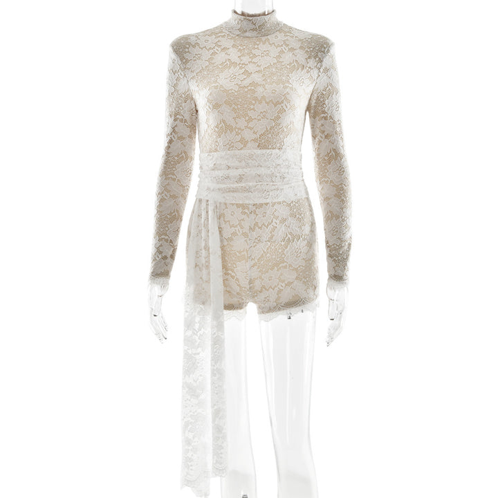 Europe, America and 2025 summer fashionable and sexy streamer lace onesie hot-selling long-sleeved crew neck women's jumpsuit