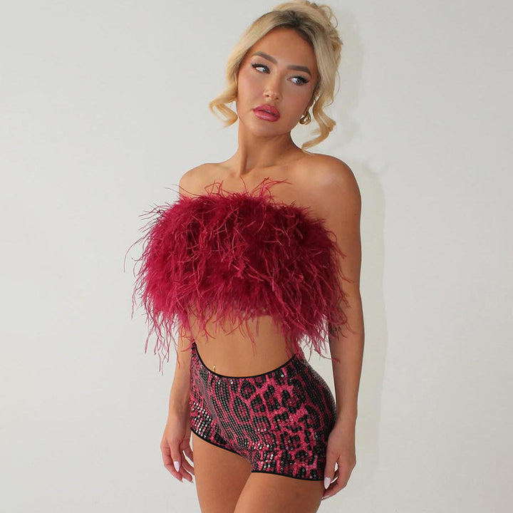Europe, America and Foreign Trade 2024 Winter New Women's Clothing Sexy Spice Girls Low Waist Sequins Contrast Color Leopard Print Sexy Women's Shorts