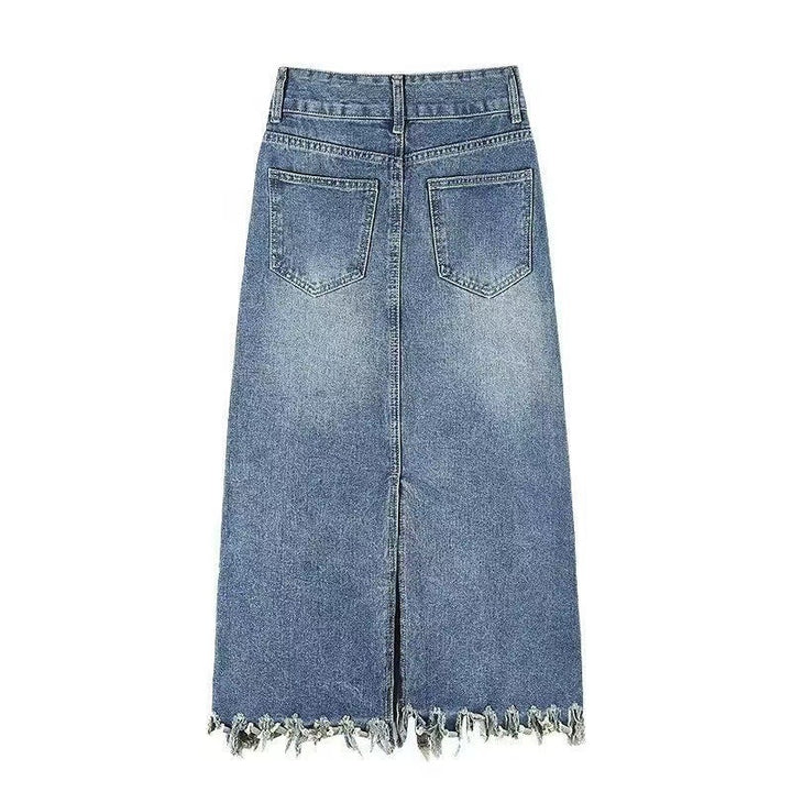 Europe, America and independent station fashion denim women's rough edge denim skirt