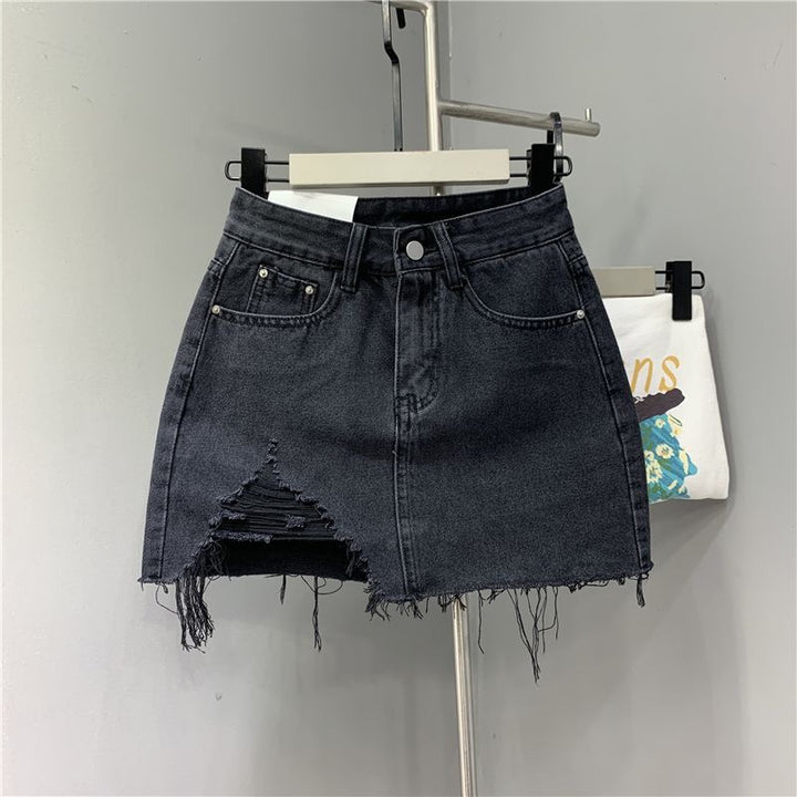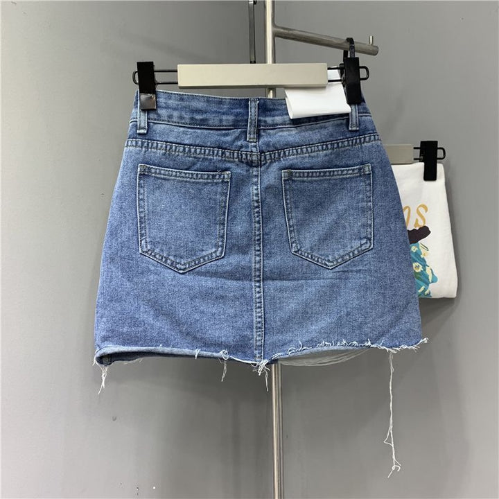 Europe, America, , fashion women, washed rough edges, irregular denim skirts at the feet