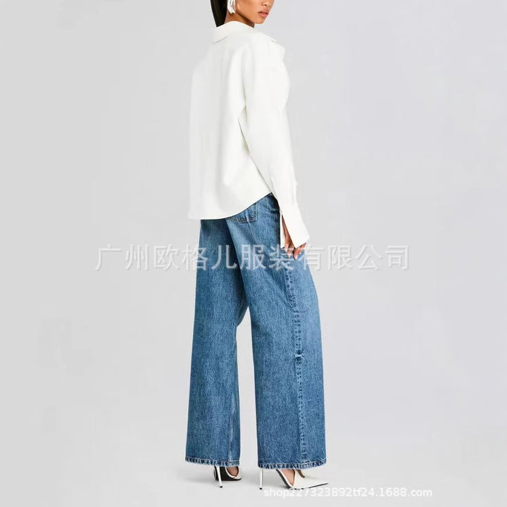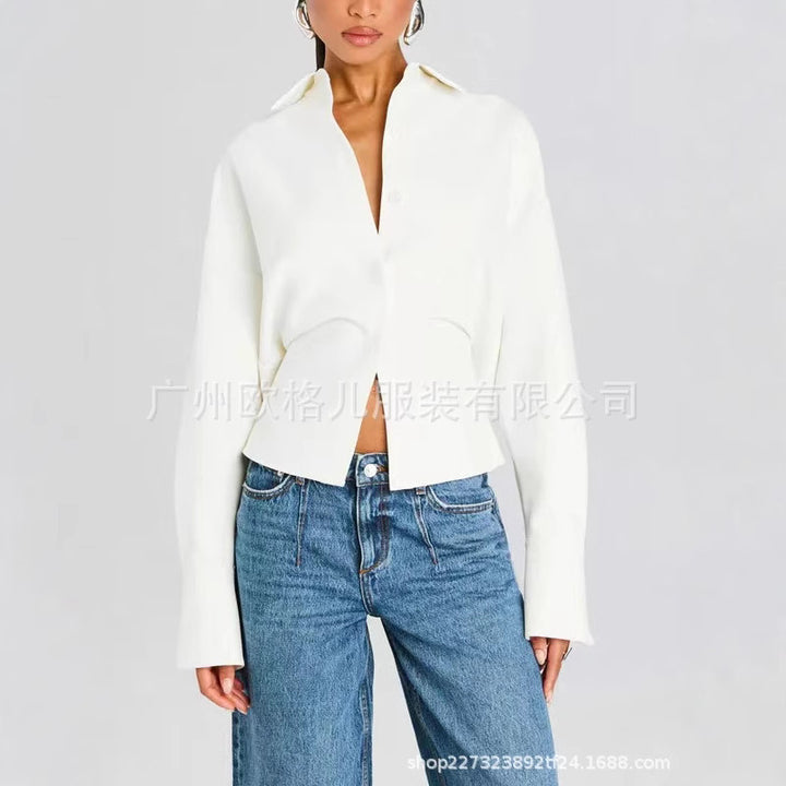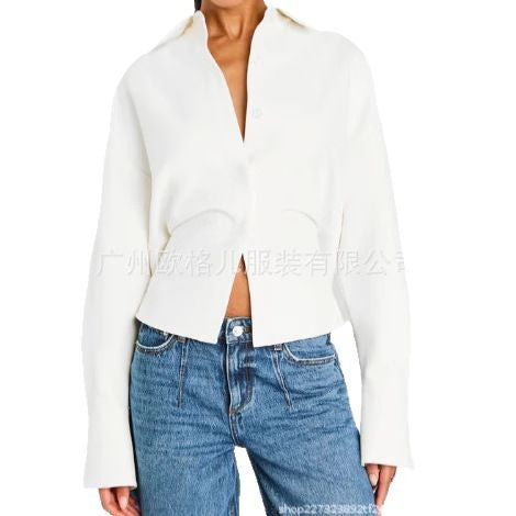 Europe, America, Foreign Trade Independent Station Women's Clothing, New White Short Top, Irregular Fashion Shirt