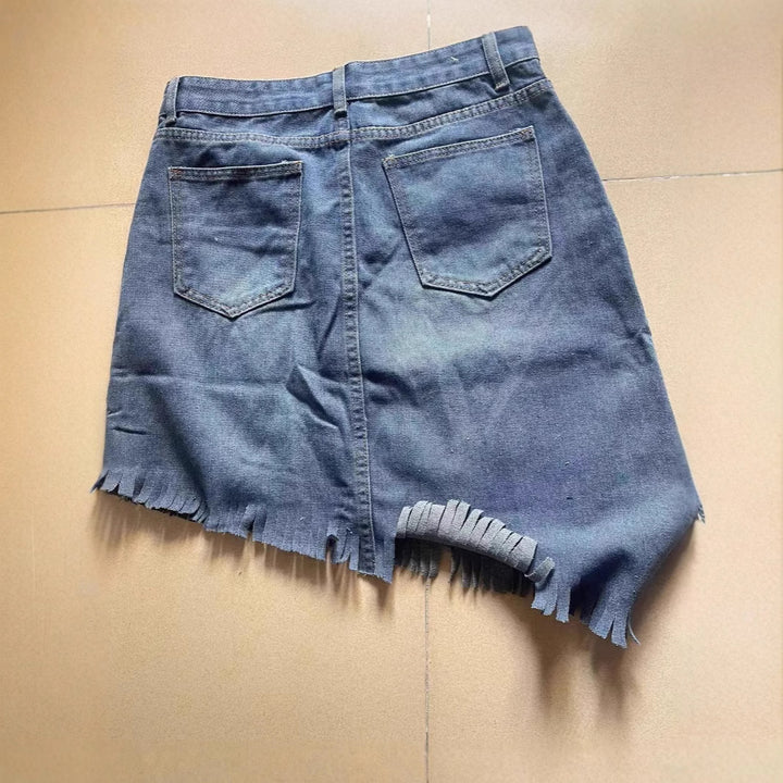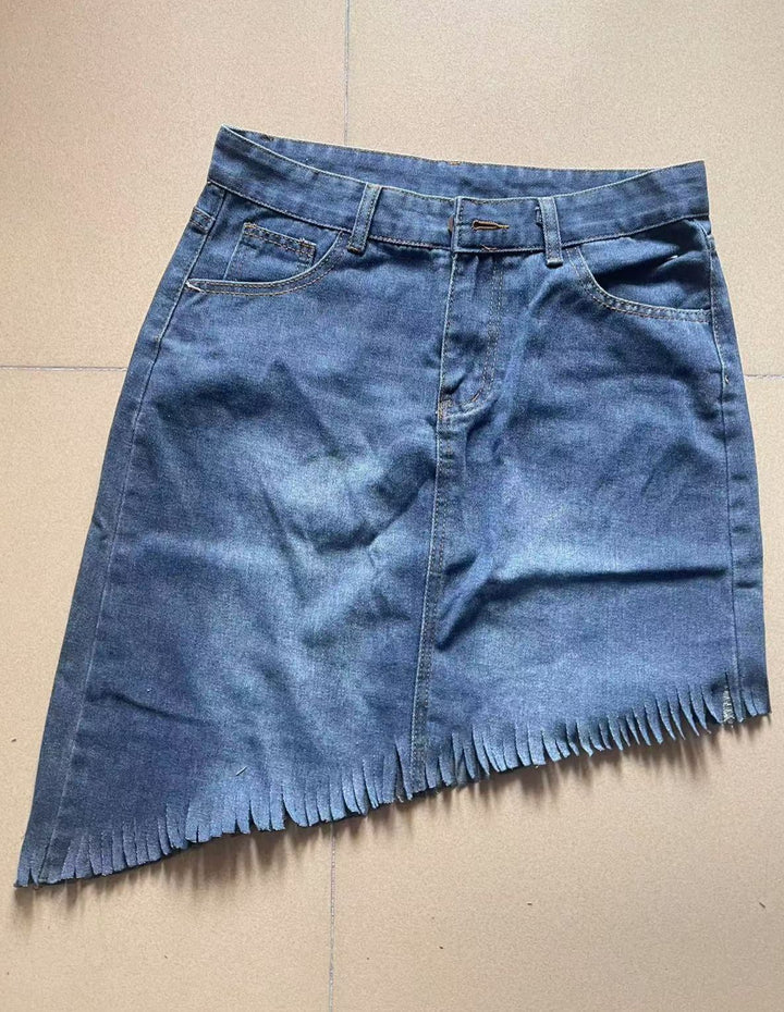 Europe, America, independent station feet irregular fringed women's denim skirt