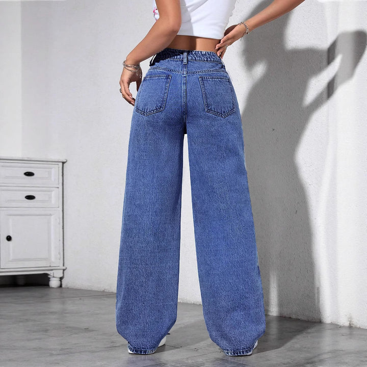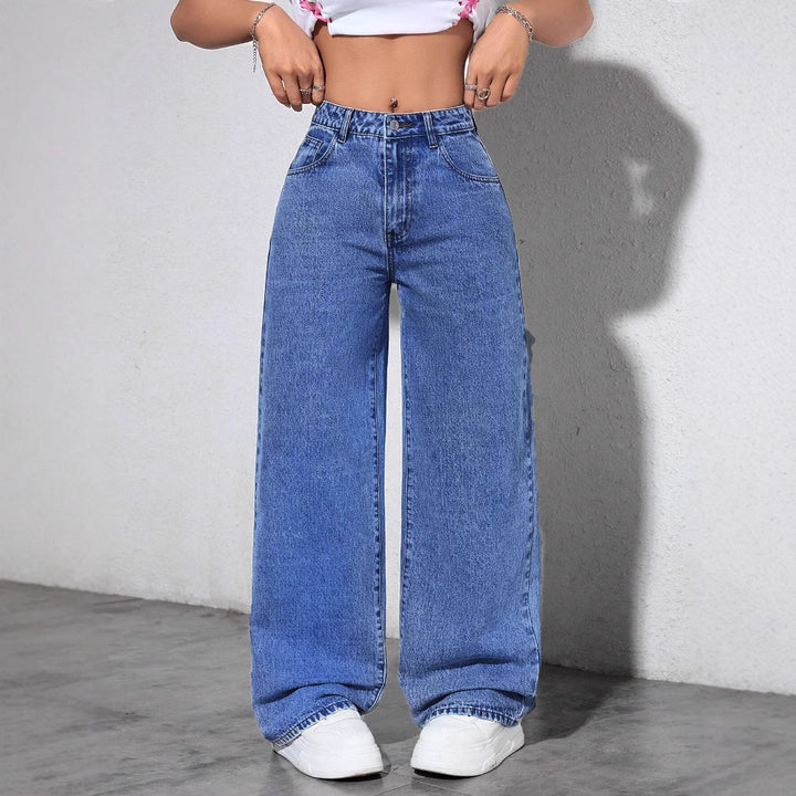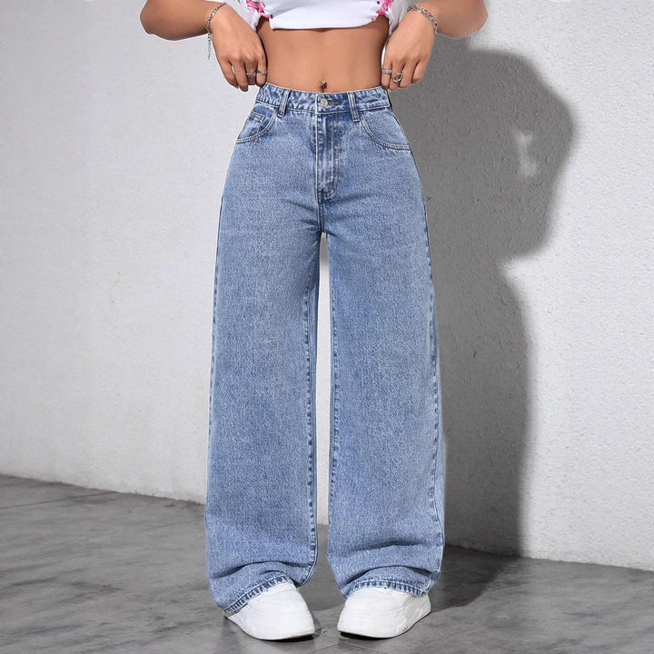 Europe, America, popular street high waist drape pure straight loose versatile wide leg trousers washed jeans