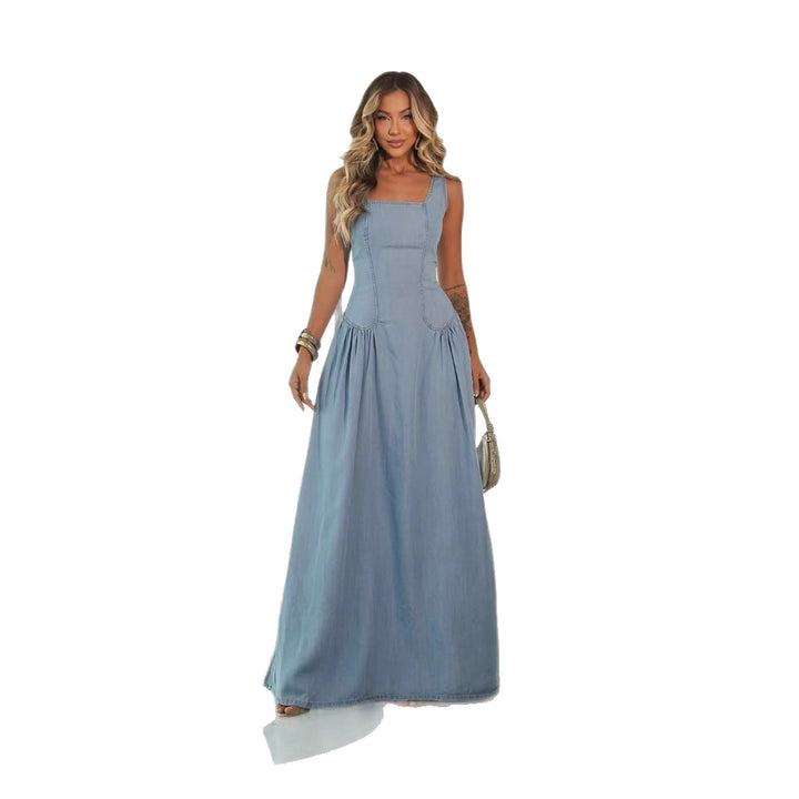 Europe and the United States 2025 spring and summer new dress high-end sense thin sleeveless backless strap denim skirt women's long dress