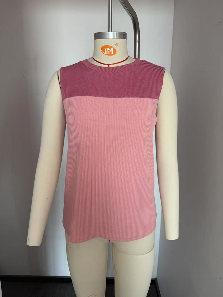 Europe and the United States 2025 summer new round neck color matching sleeveless top short sleeve vest women