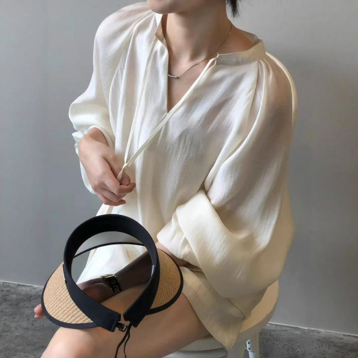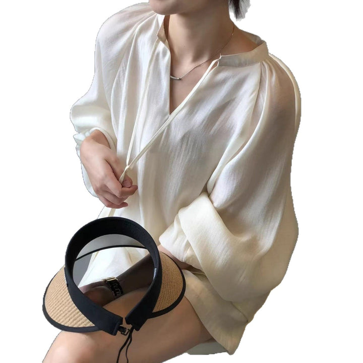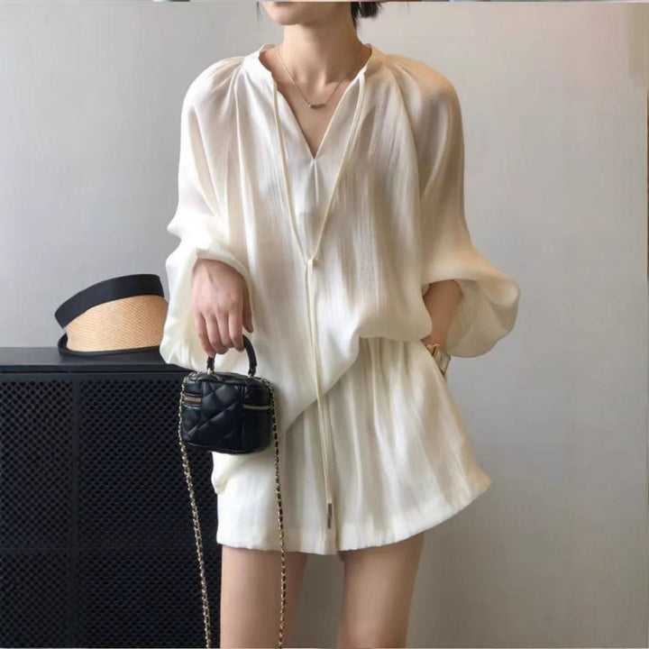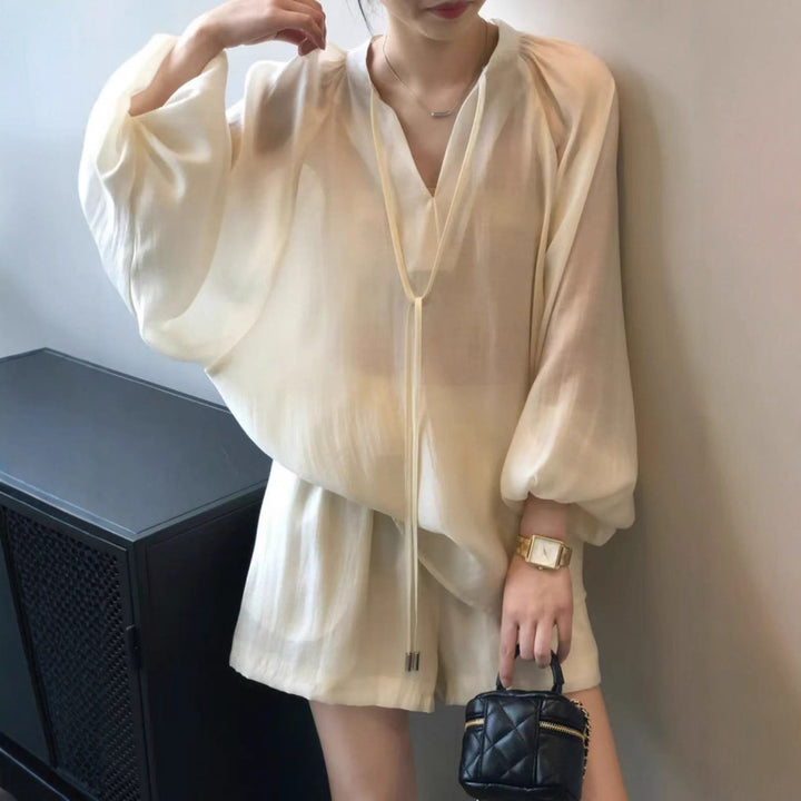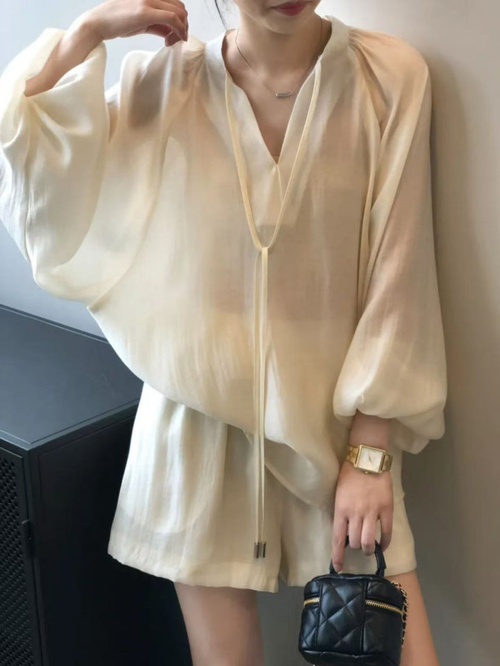 European, American independent station summer new women's semi-transparent simple cream yellow pants set