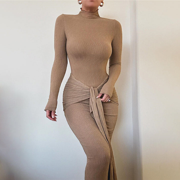 European and American 2024 autumn new hot-selling long-sleeved streamer long dress fashionable and sexy pleated slim dress