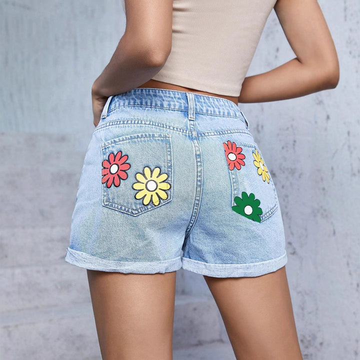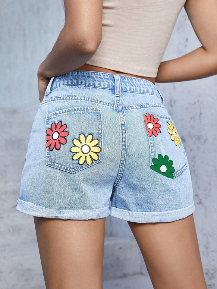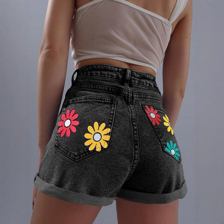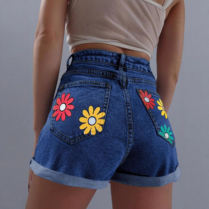 European and American denim shorts women's summer loose 2025 popular thin new irregular trousers flanged printing