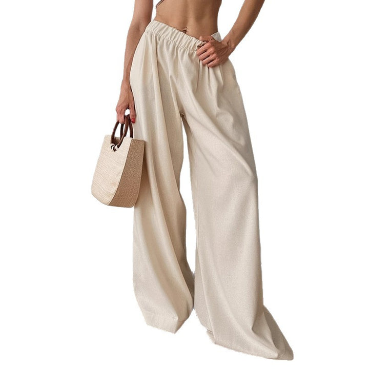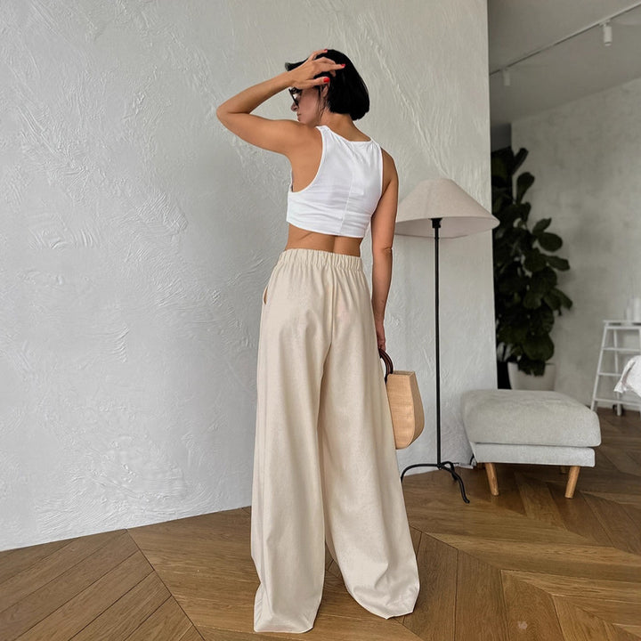 European and American fashion casual cotton and linen wide-leg pants women's 2025 autumn loose drape khaki trousers