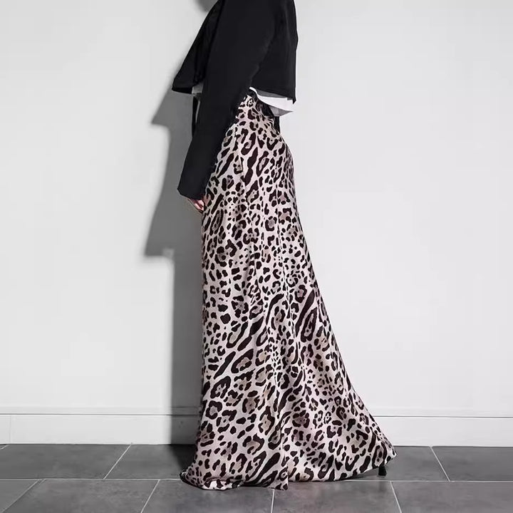 European and American fashion leopard print long skirt women's 2024 summer new high waist drape fishtail skirt high-end skirt wholesale