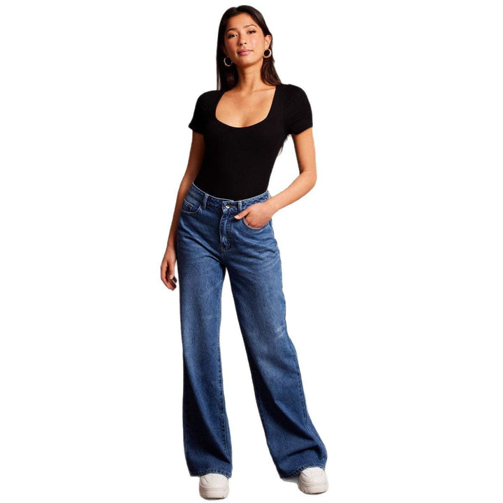 European and American fashion retro high-waisted loose wide-leg pants straight jeans drape floor trousers women's