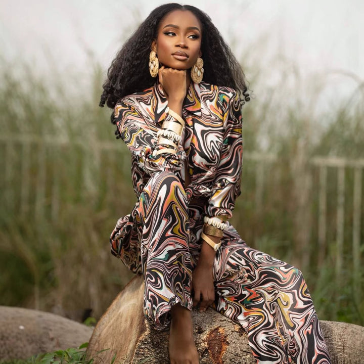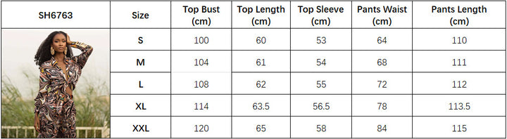 European and American fashion women's clothing lapel print long-sleeved shirt casual trousers African women's temperament foreign style two-piece s...